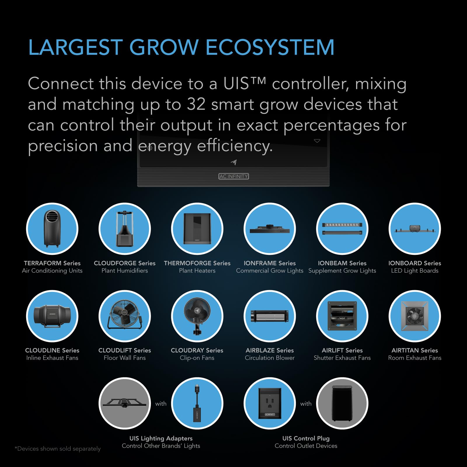 • Dimmer enables 0 to 100% brightness. Can connect with our smart controllers to access grow cycles, scheduling, and app.