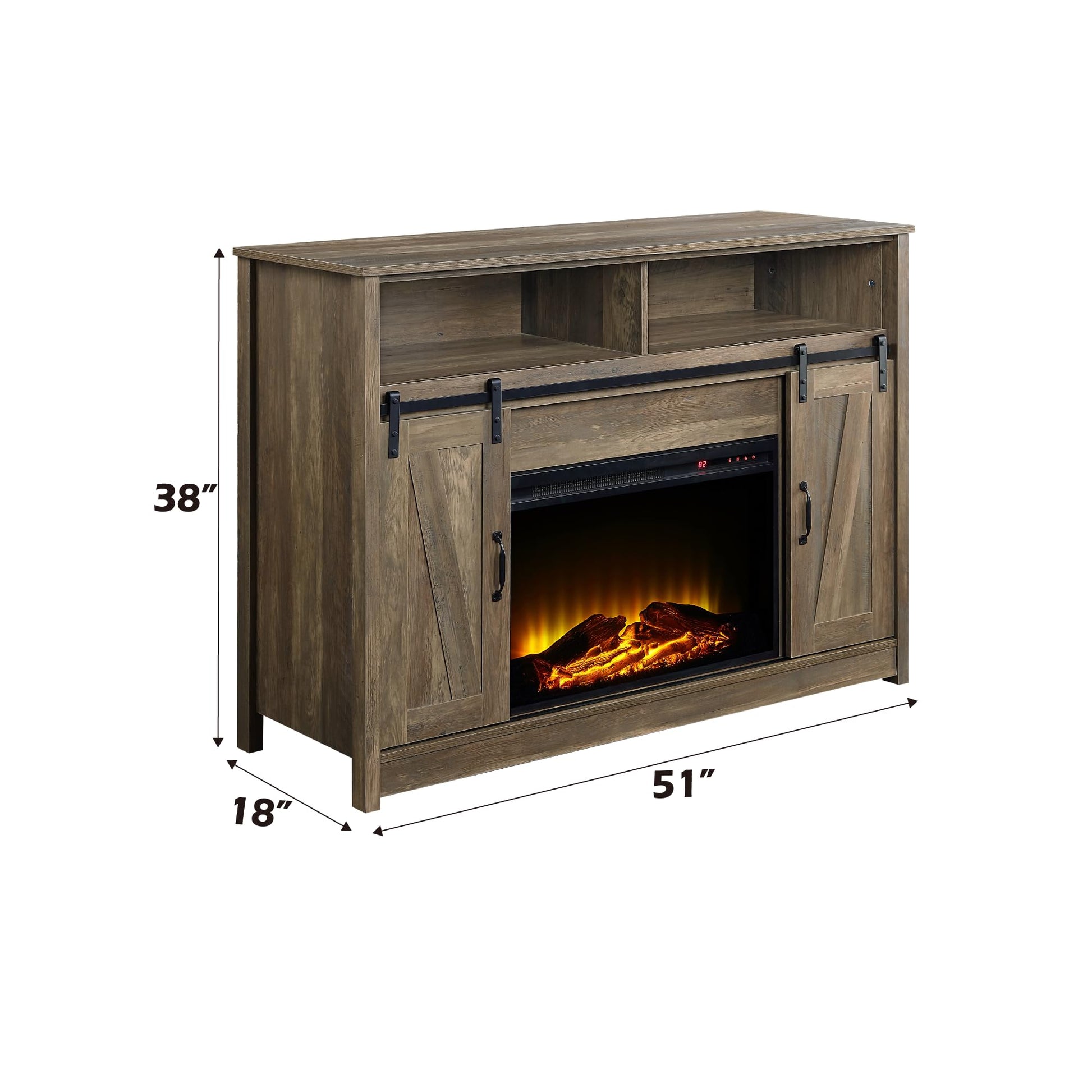 ACME Tobias Electric Fireplace Rustic Farmhouse TV Stand with Sliding Barn Door for TVs up to 55", Rustic Oak Finish