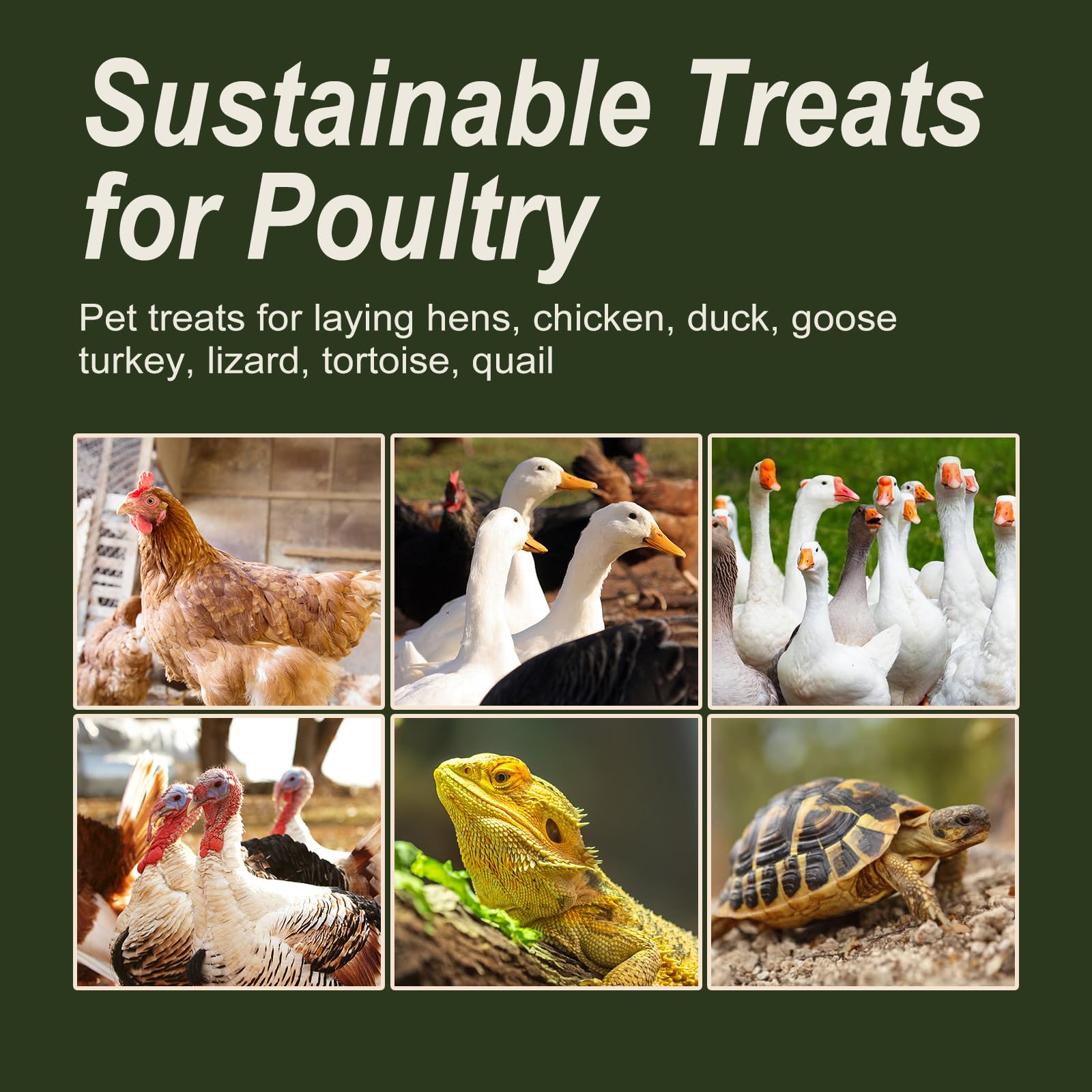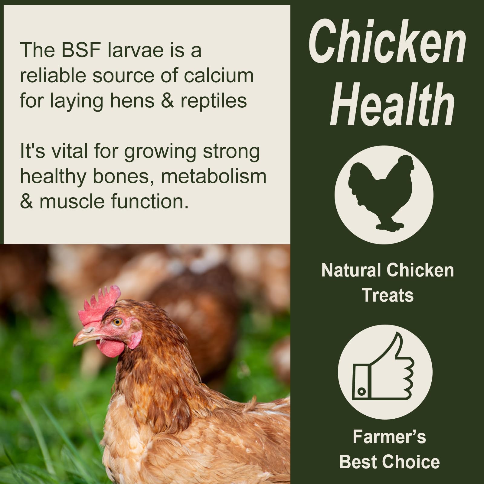 PACKED FULL OF ENERGY: When you chickens eat the larva, they're getting the benefit of all that energy. Black Soldier Fly larvae make a great staple food or treat for chickens and many reptiles, like bearded dragons, leopard geckos, poison dart frogs, crested geckos, day geckos, and turtles etc.