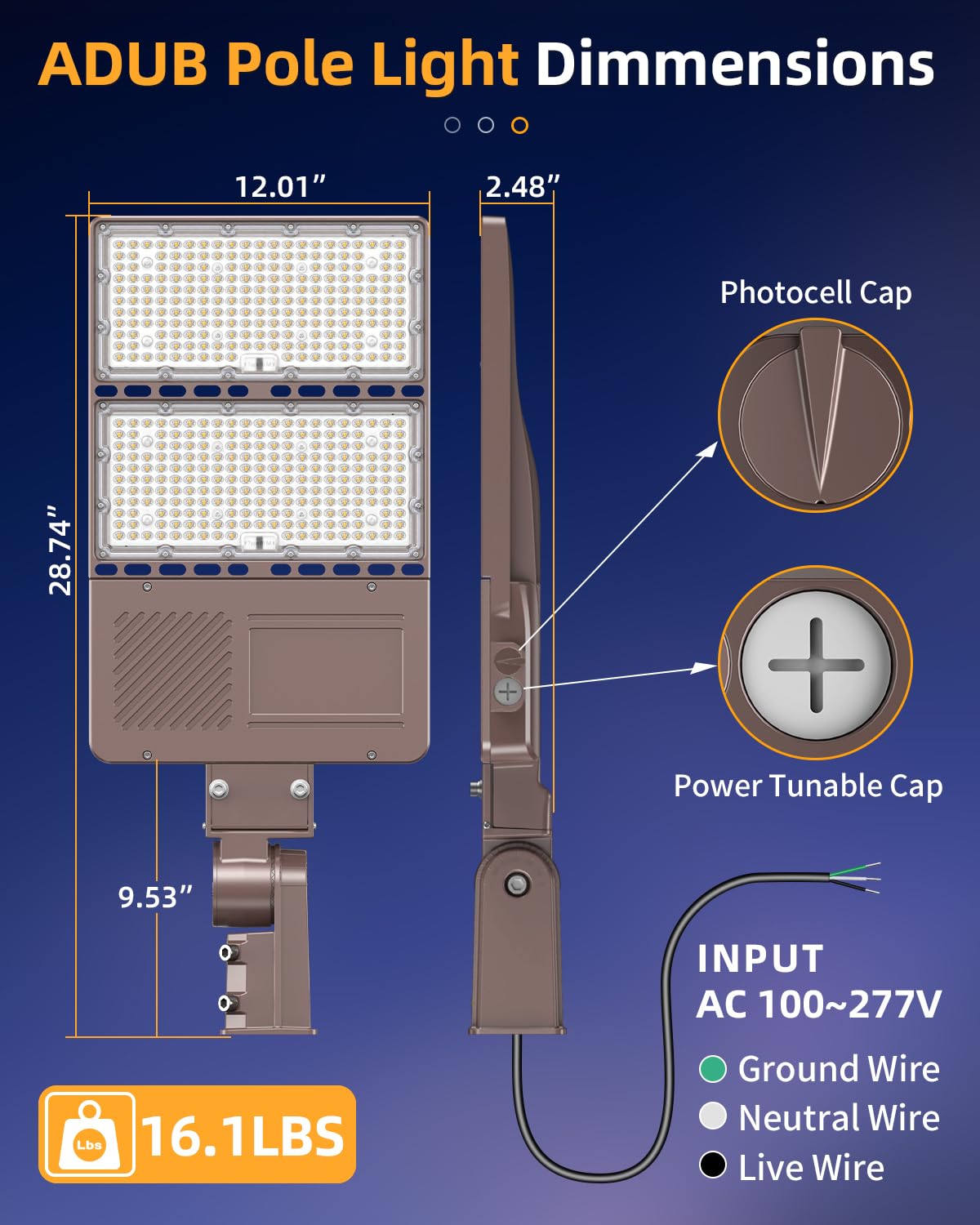 • Reliable 5 Years Warranty: ADUB LED street lights come with UL and DLC listed. No worry about the Warranty within 5 years for all ADUB lights. We also provide lifetime technical support. If any question or issue with our LED area lights, please contact us
