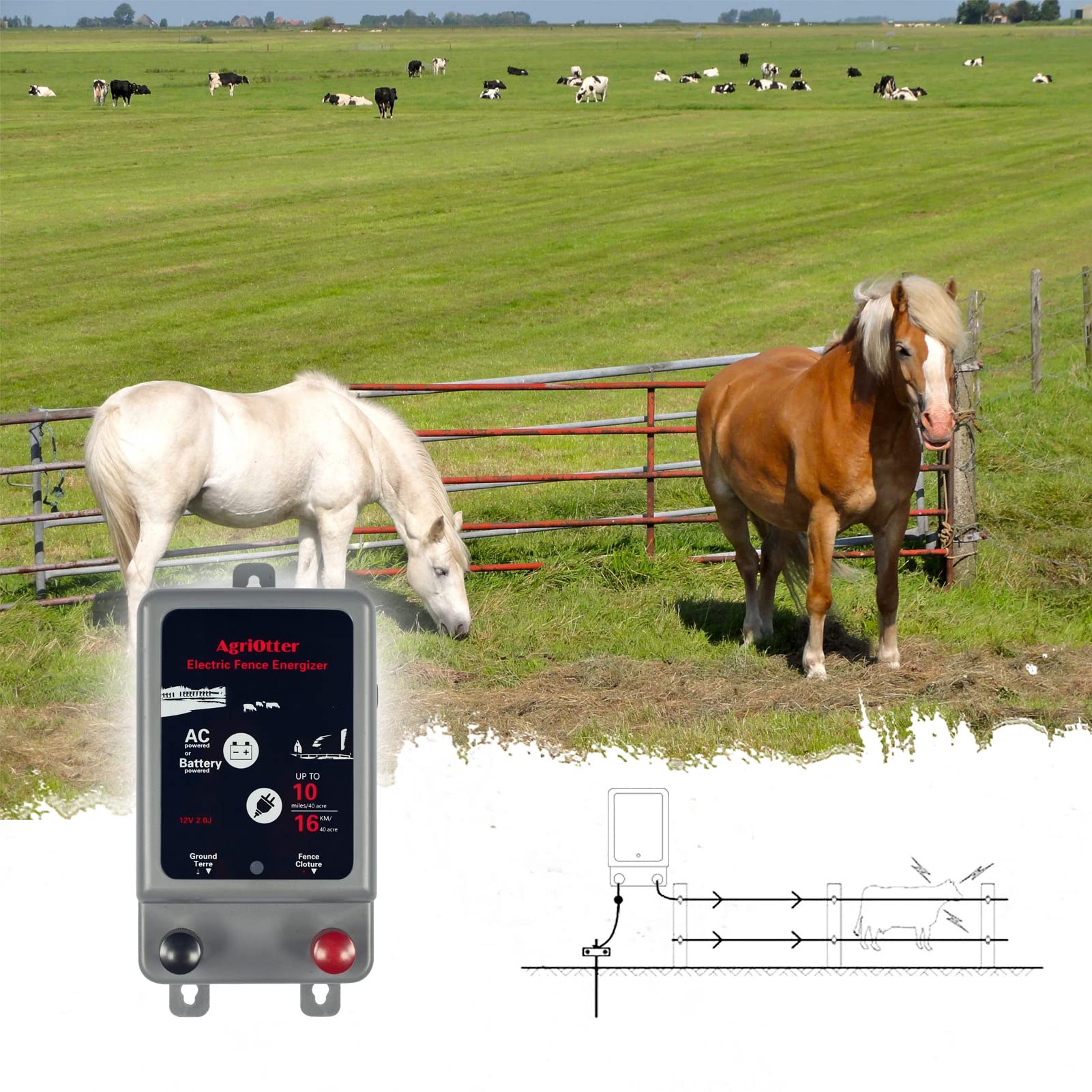 • 🐓Advanced Technology. The AgriOtter Energizer powers a fence line to keep pets and livestock corralled while preventing predators from accessing your land.