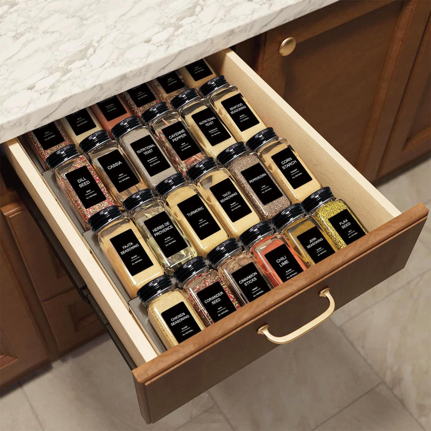 Premium Quality: Our spice jars are made from high-quality lead-free glass, ensuring their longevity and safety for storing your spices. The modern square design and perfectly fitting tops make them suitable for any spice rack, cabinet, organizer, drawers, or kitchen decor.