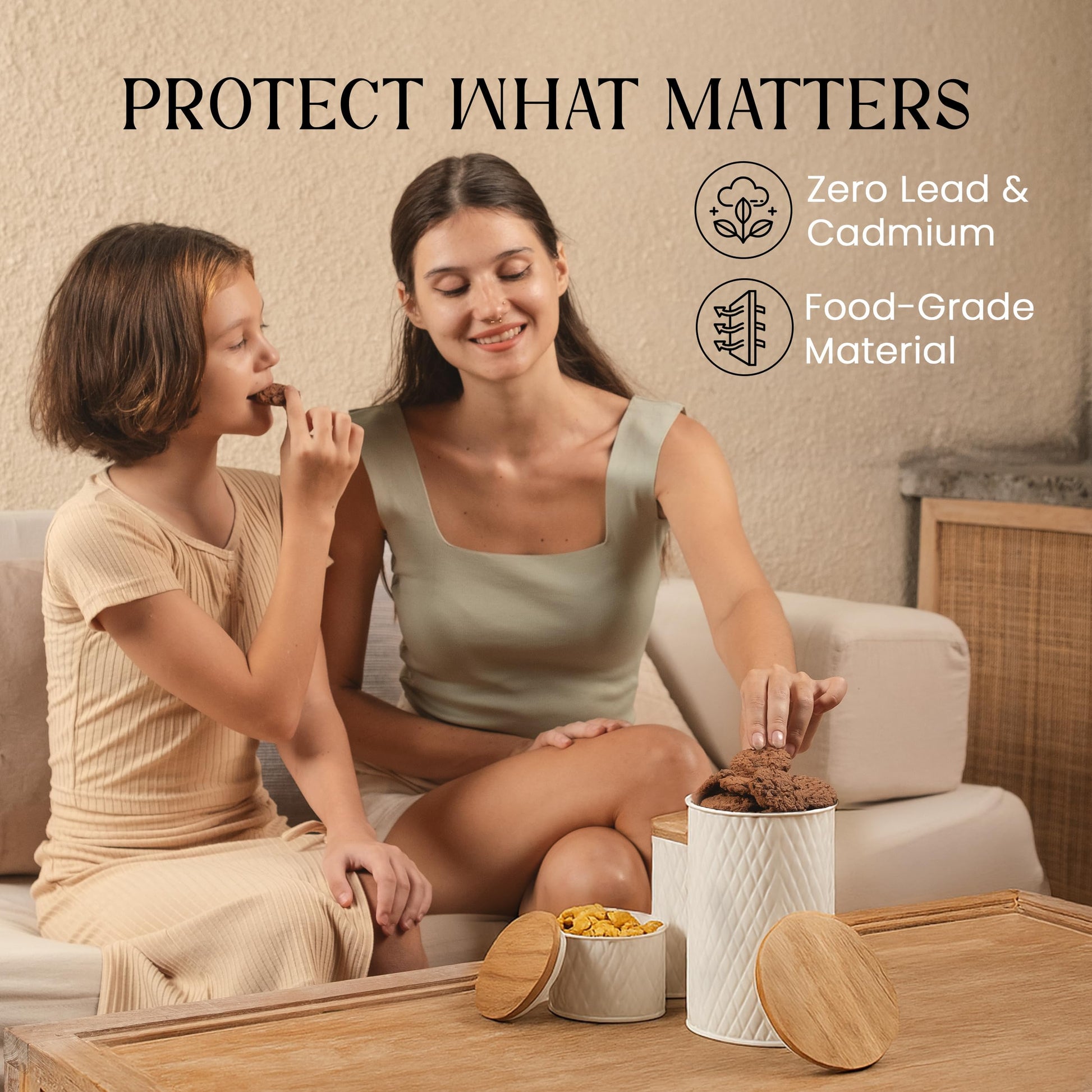 Beauty Is in the Details – Elevate your style as you reduce stress. Your kitchen canister set delivers high-end quality with black galvanized metal and sleek acacia wood to complement any aesthetic.