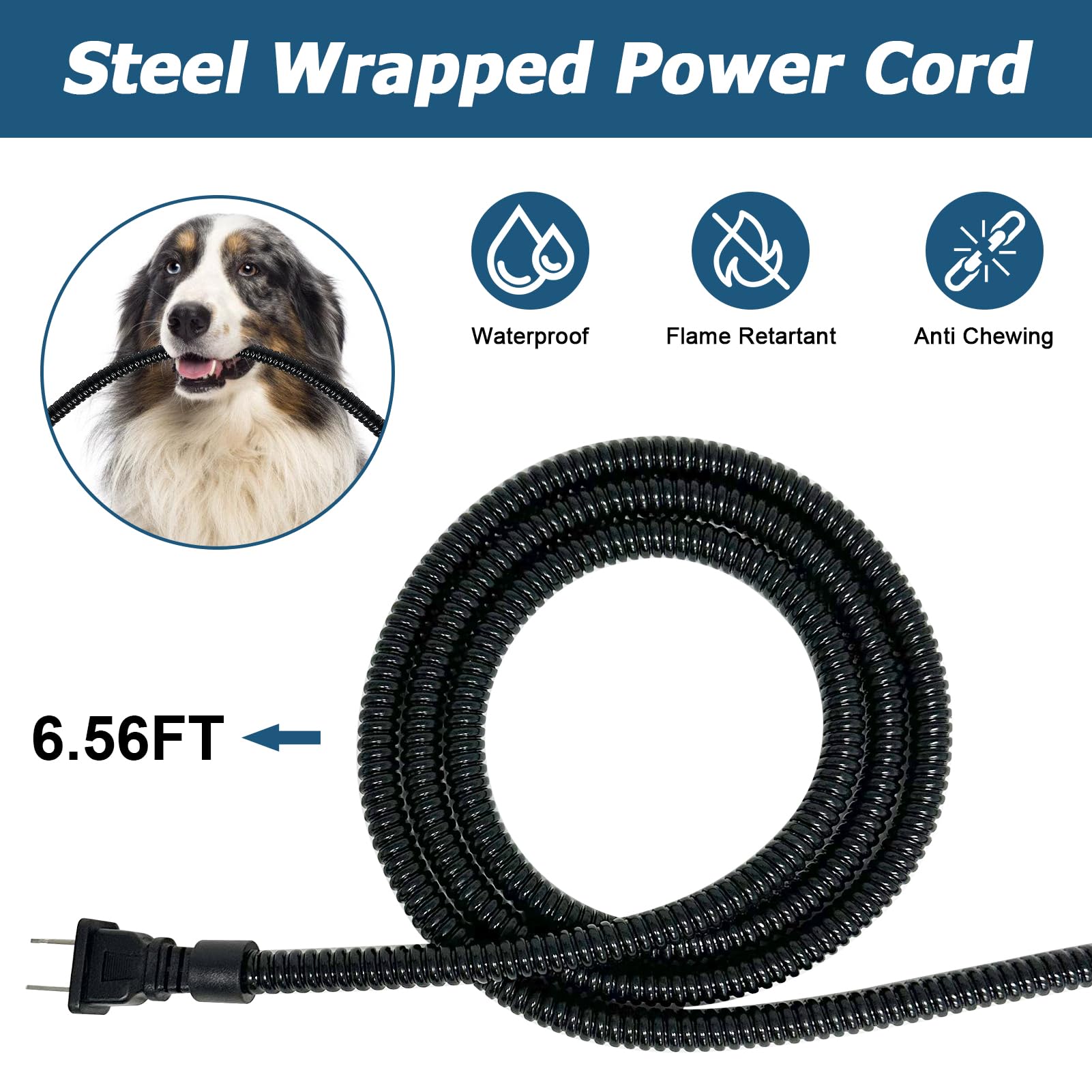 ๐ฆ๐ฎ๐ณ๐ฒ๐๐ ๐ ๐ฎ๐๐ฒ๐ฟ๐ถ๐ฎ๐น๐ & ๐๐ป๐๐ถ-๐๐ต๐ฒ๐ ๐๐ผ๐ฟ๐ฑ - The heated dog bowl is made of premium BPA-free plastic, eco-friendly and harmless, providing a safe drinking environment for animals. It is a thick plastic that's super smooth, tough and durable, super easy to clean. Equipped with a 78.7 inches steel-wrapped power cord, it is chew-resistant and waterproof, can effectively prevent your pet from gnawing through the power cord, ensuring safety and longevity.