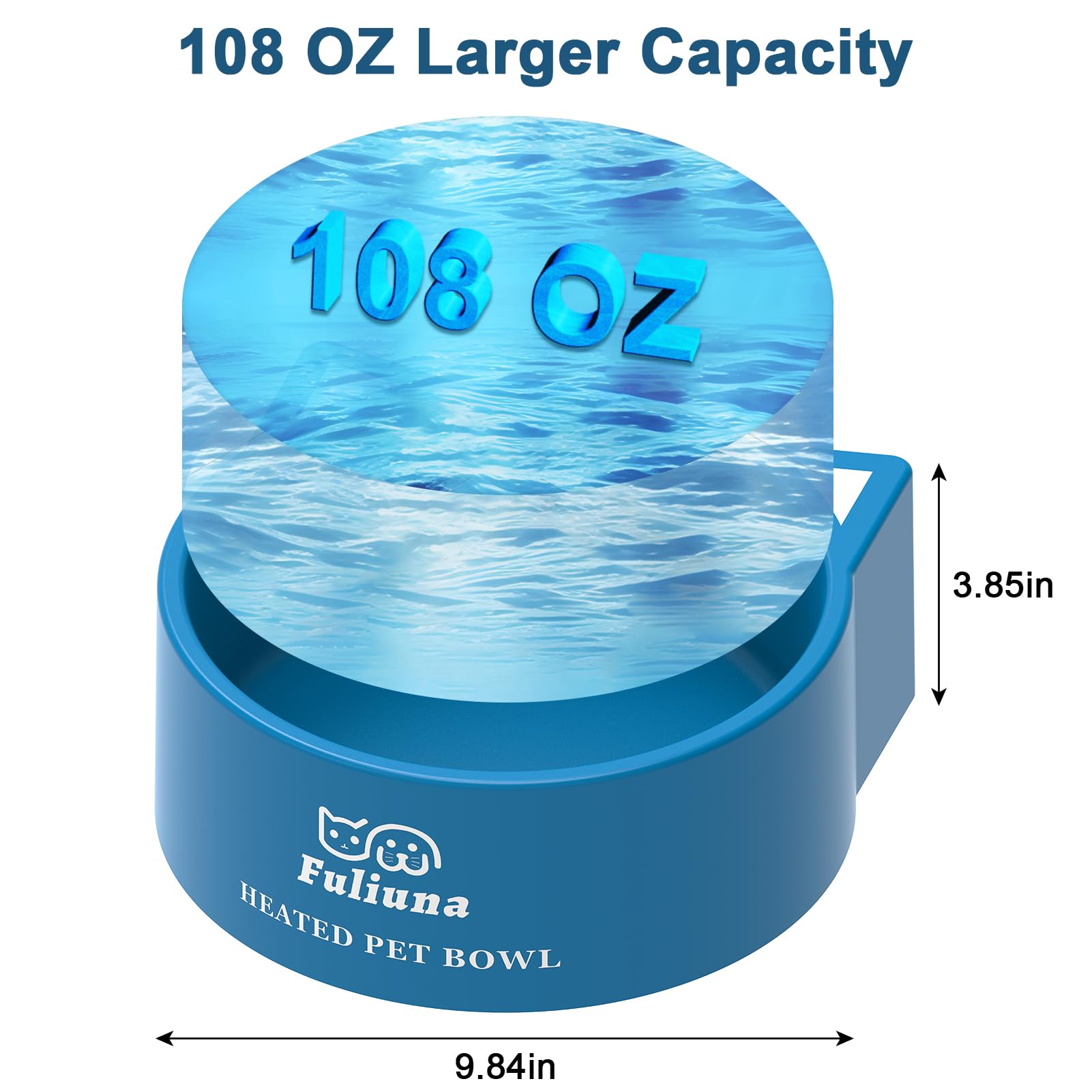 ๐ฏ.๐ฎ๐ ๐๐ฎ๐ฟ๐ด๐ฒ ๐๐ฎ๐ฝ๐ฎ๐ฐ๐ถ๐๐ - This large heated dog water bowl outdoor can hold up to 108 ounces (3.2L/0.85Gallon) of water, can meet more drinking needs. With 30 watt heater that keeps the water from freezing in winter, you don't need to worry about using up too much electricity even if the heated water bowl works all night. Built-in overheat protection device, it is very safe. This outdoor heated pet bowl provides warm water to your pet even on sub-zero days.