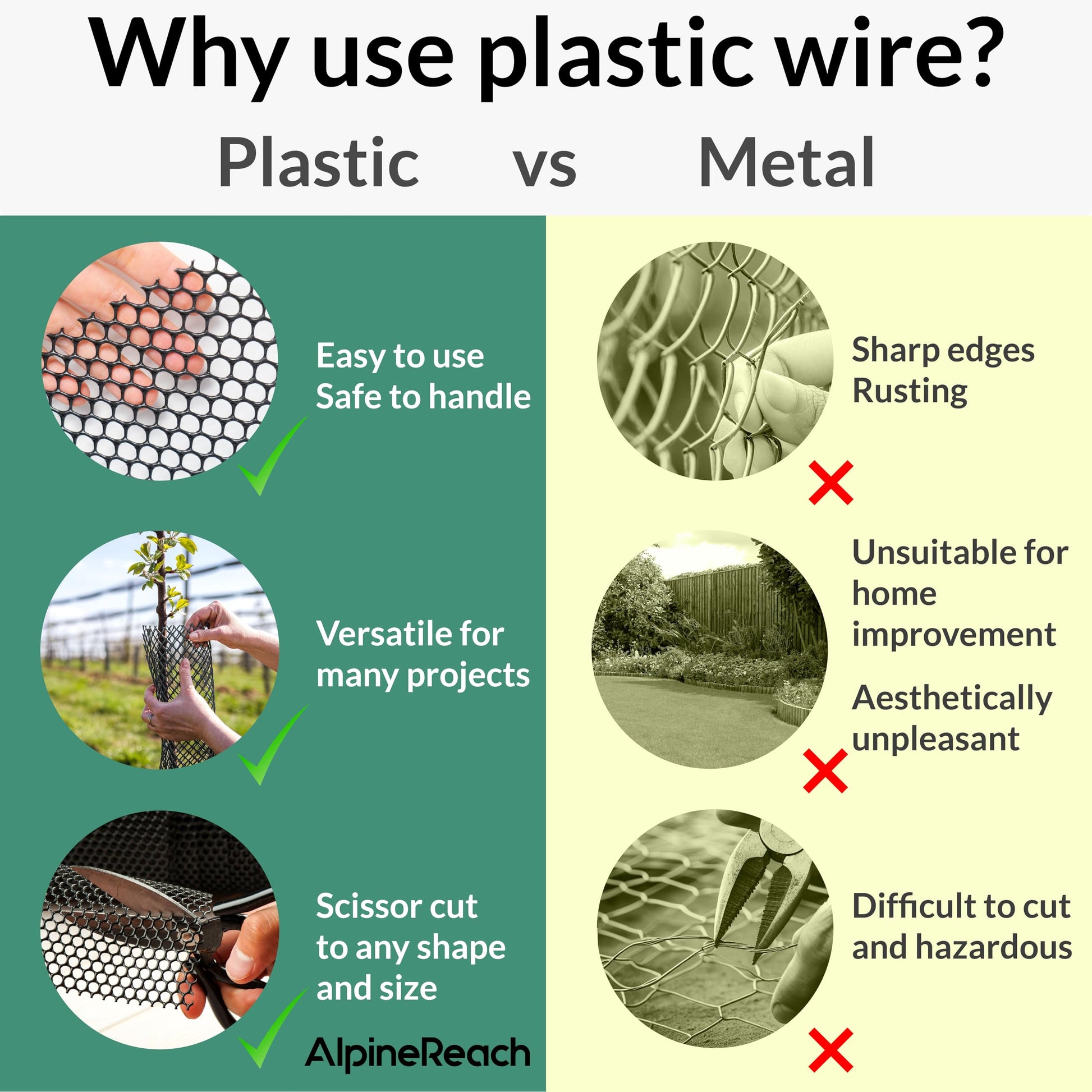 SUPERIOR DURABLE MATERIAL - The Plastic Wire Mesh Fence is highly resistant to wear and tear. It can withstand harsh weather conditions and is durable for long-term use. Zip tie accessories are included and can be quickly and easily fitted to your required fencing area.