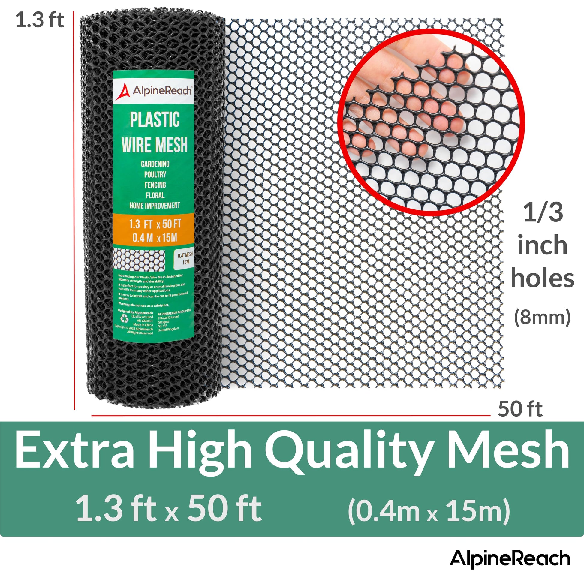 AlpineReach Plastic Wire Mesh 1.3ft x 50ft (15.7" x 600") Fence Roll with Zip Ties - Ideal for Poultry, Dogs, Rabbit Barrier & Gardening, Durable Chicken Mesh, Versatile Rigid Fencing & Netting, Black