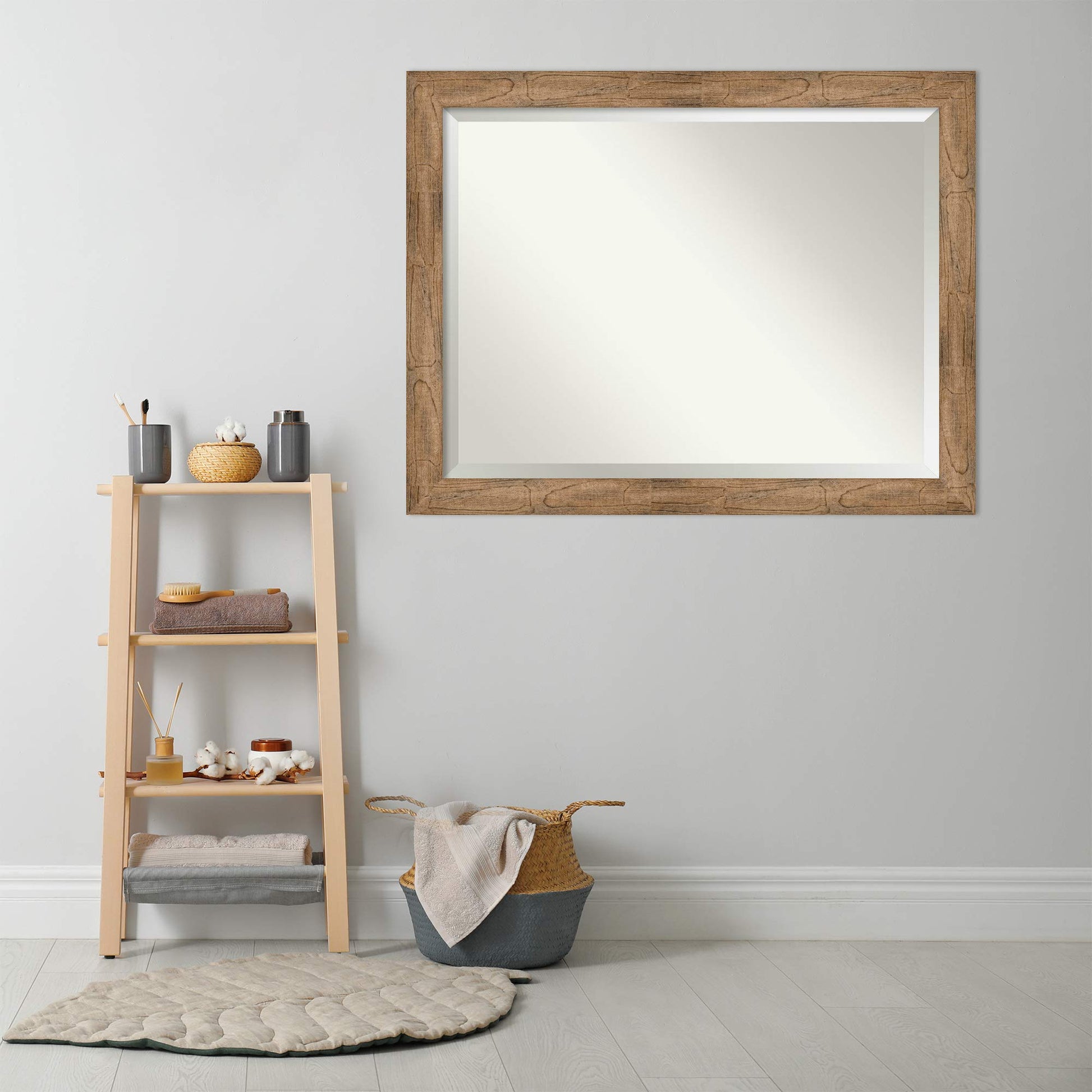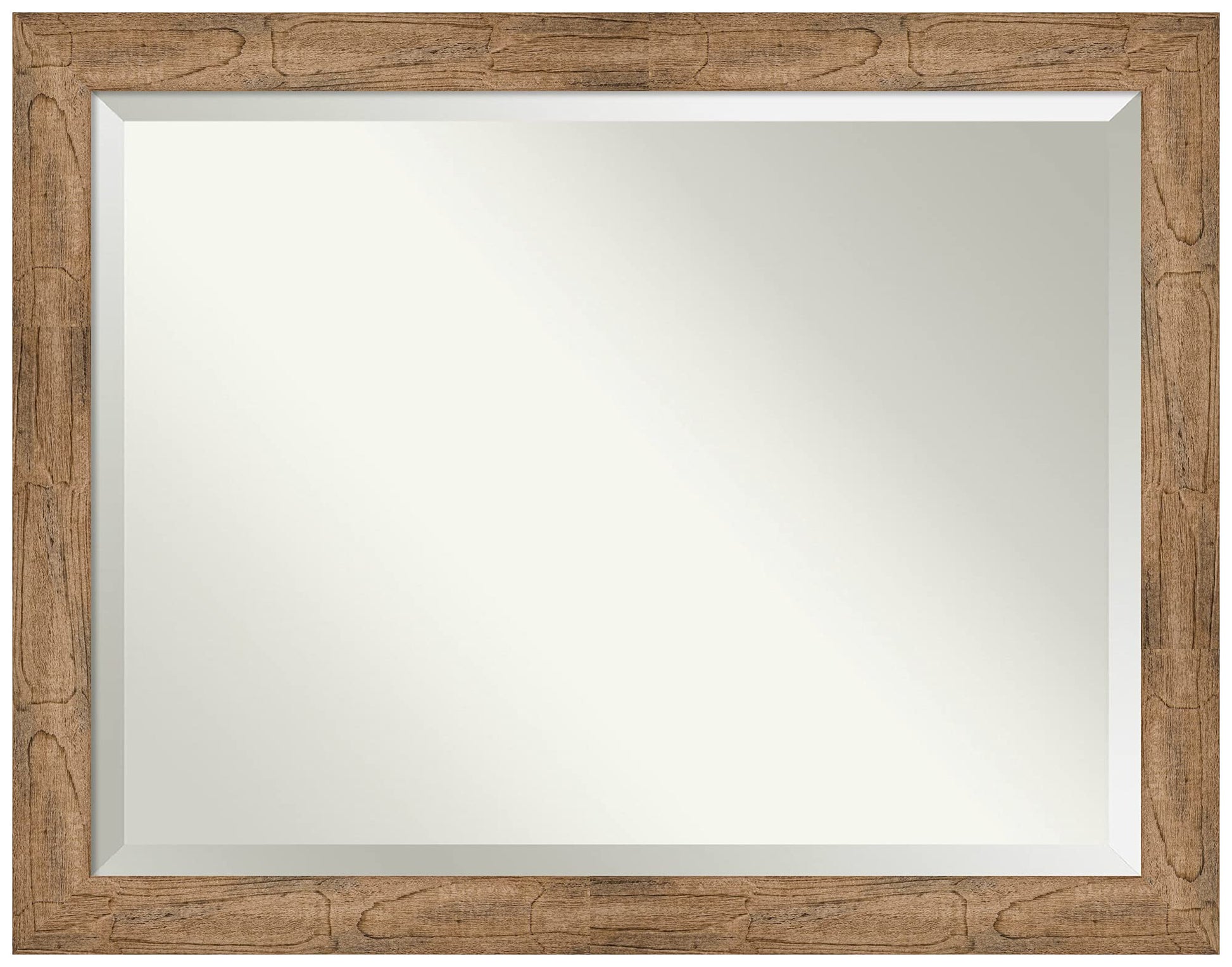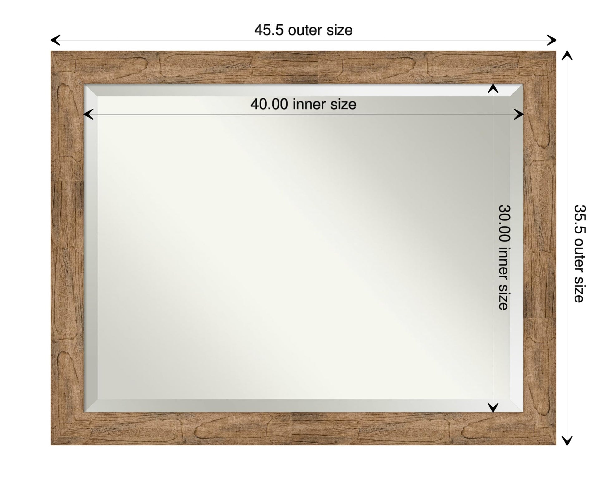 Amanti Art Brown Bathroom Mirror for Over Sink, 36x46 Owl Brown Rectangle Vanity Mirror, X-Large Country Rustic Wood Frame, Hangs Horizonally and Vertically, Bathroom Wall Decor, Beveled Edge