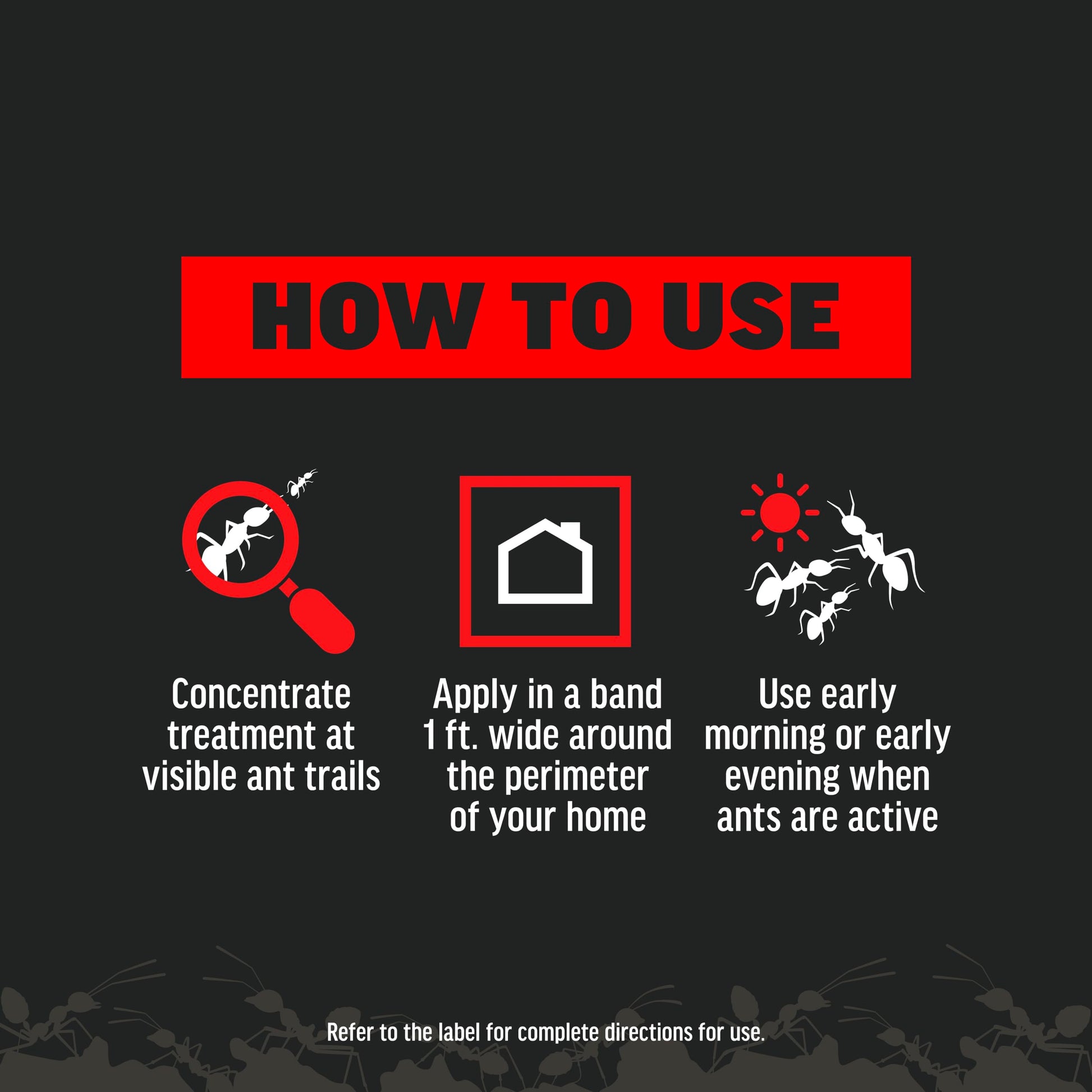 USE ANY TIME ANTS ARE ACTIVE; for best results during hot weather, apply during cool early morning or early evening hours, when ants are most active; do not apply when the ground or grass is wet, rain is expected within 24 hours, or temperatures are below 50°F