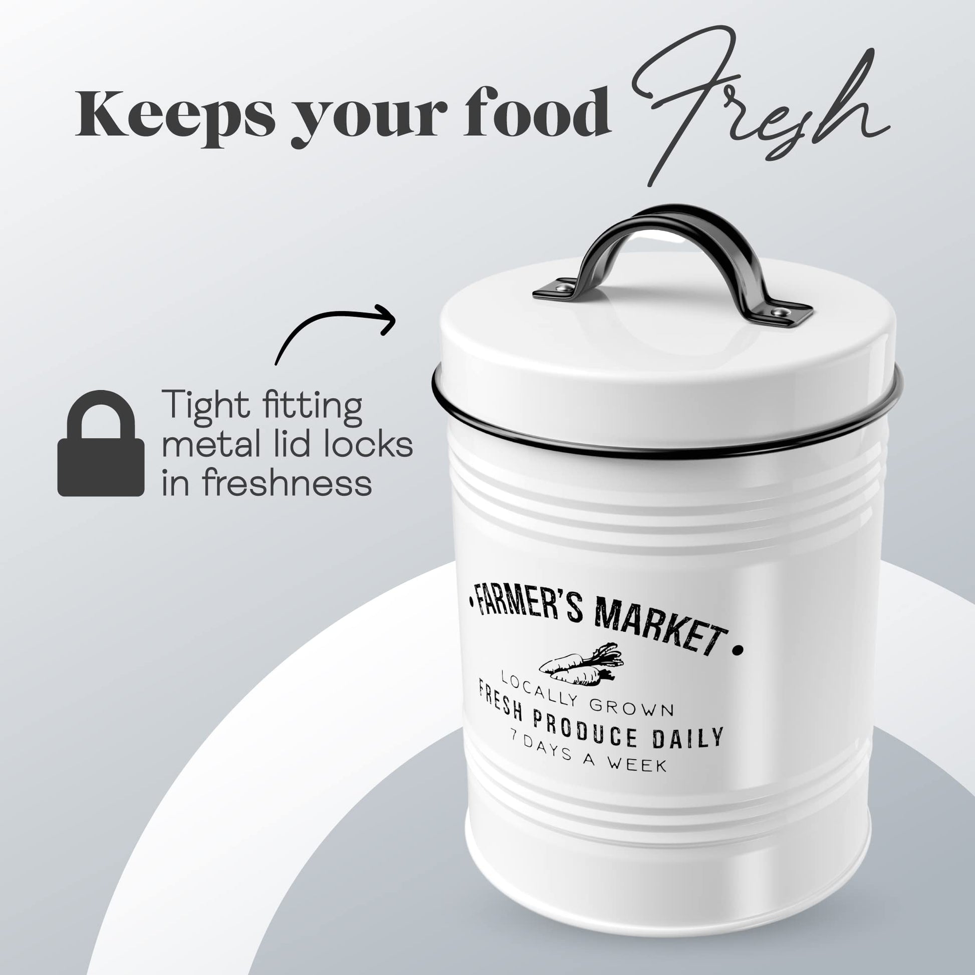 Amici Home Farmers Market Metal Canister | Dry Food Storage Container | Airtight Lid | 76 Ounce Capacity | Farmhouse Décor | Metal Canister for Kitchen Countertop