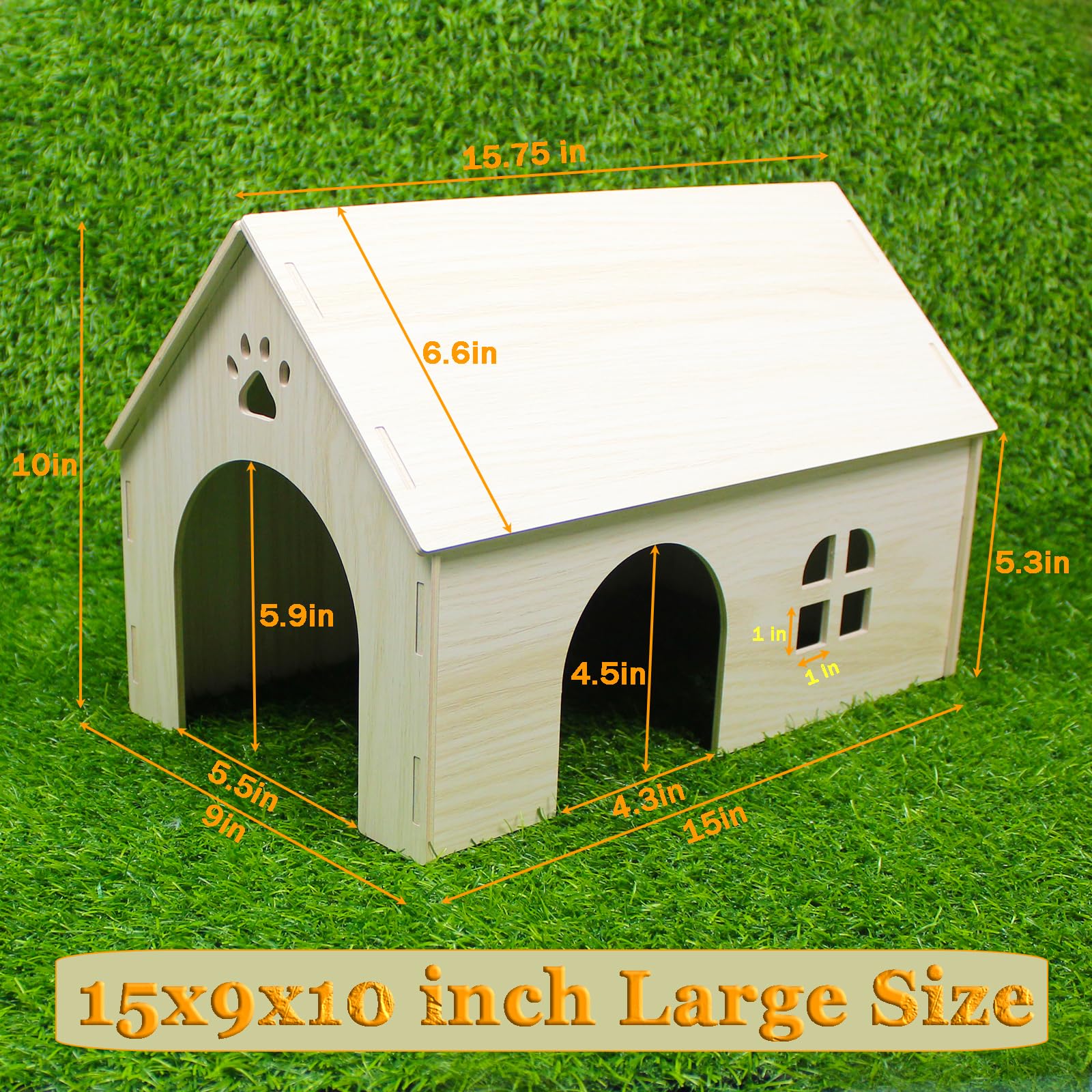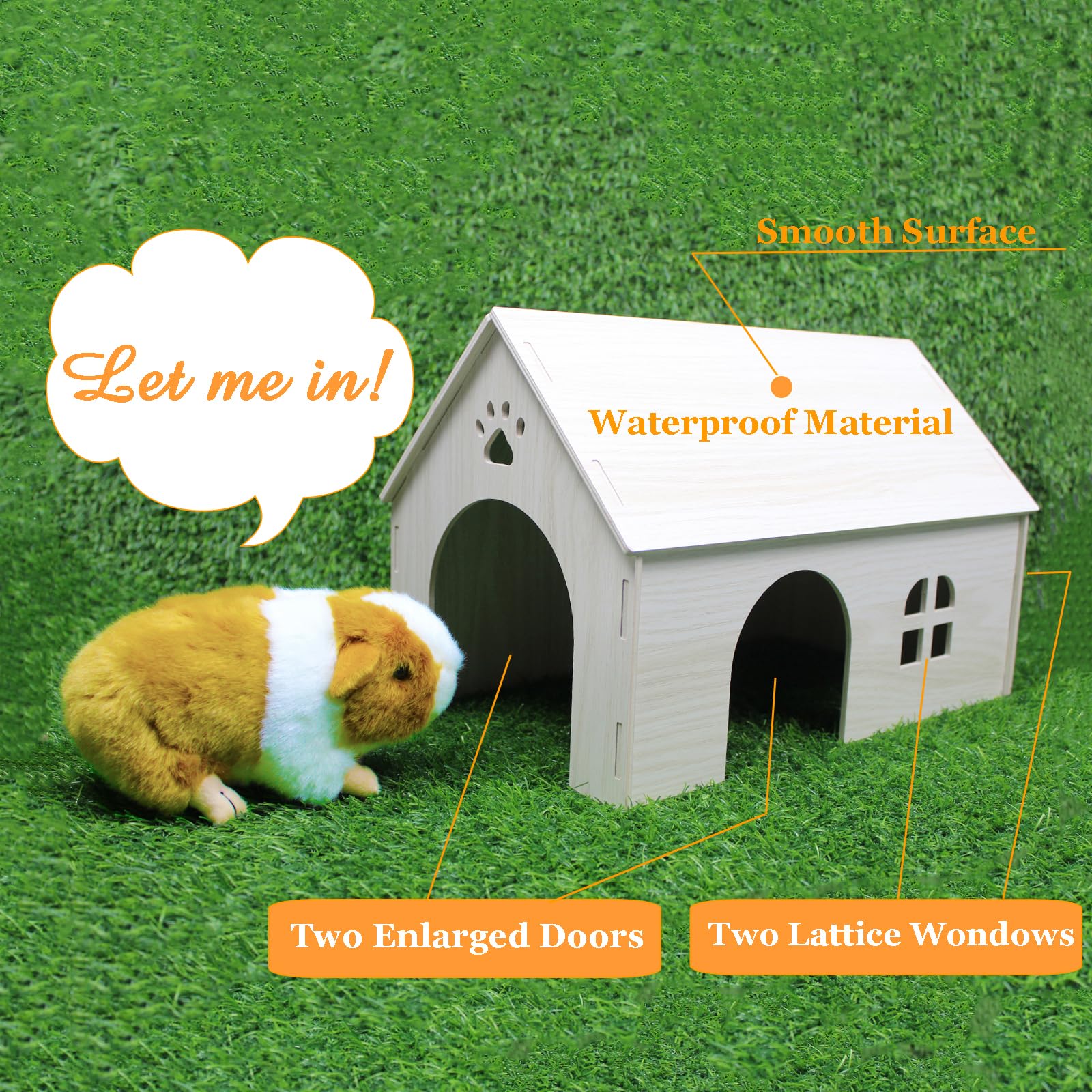 【Larger Space】The size of the guinea pig house is 15x9x10in(L*W*H), larger than other houses. The house is designed with two doors and one window, and there is enough space for young and adult guinea pigs, as well as for young rabbits, hedgehogs, dwarf bunny, hamsters, chinchillas, gerbils, sugar gliders, and similar sized pets to play, hide, sleep and rest.