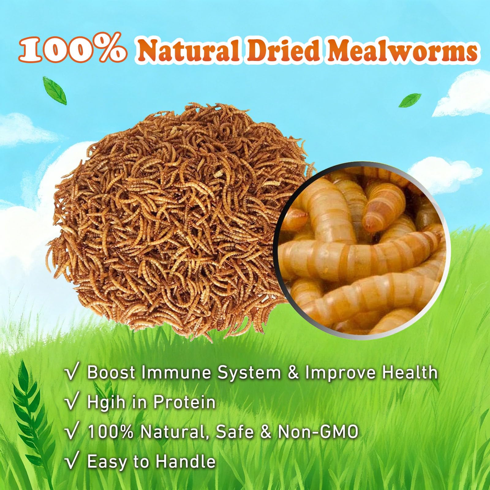 HEALTHY & TASTY - Dried mealworms are super rich in amino acids, fats, and protein! Their essential nutrients are key for healthier Chickens, Birds, Duck, Geese, Reptiles, Turtles, Hedgehogs and more!