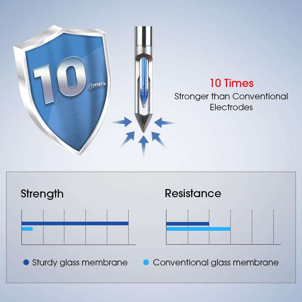 RELIABLE + SMART + PORTABLE –– The top-rated smart pH tester is now paired with the Swiss LabSen 765 blade spear pH electrode, allowing you to directly take lab-grade pH measurement in meats and other solid foods and manage data wherever you go.