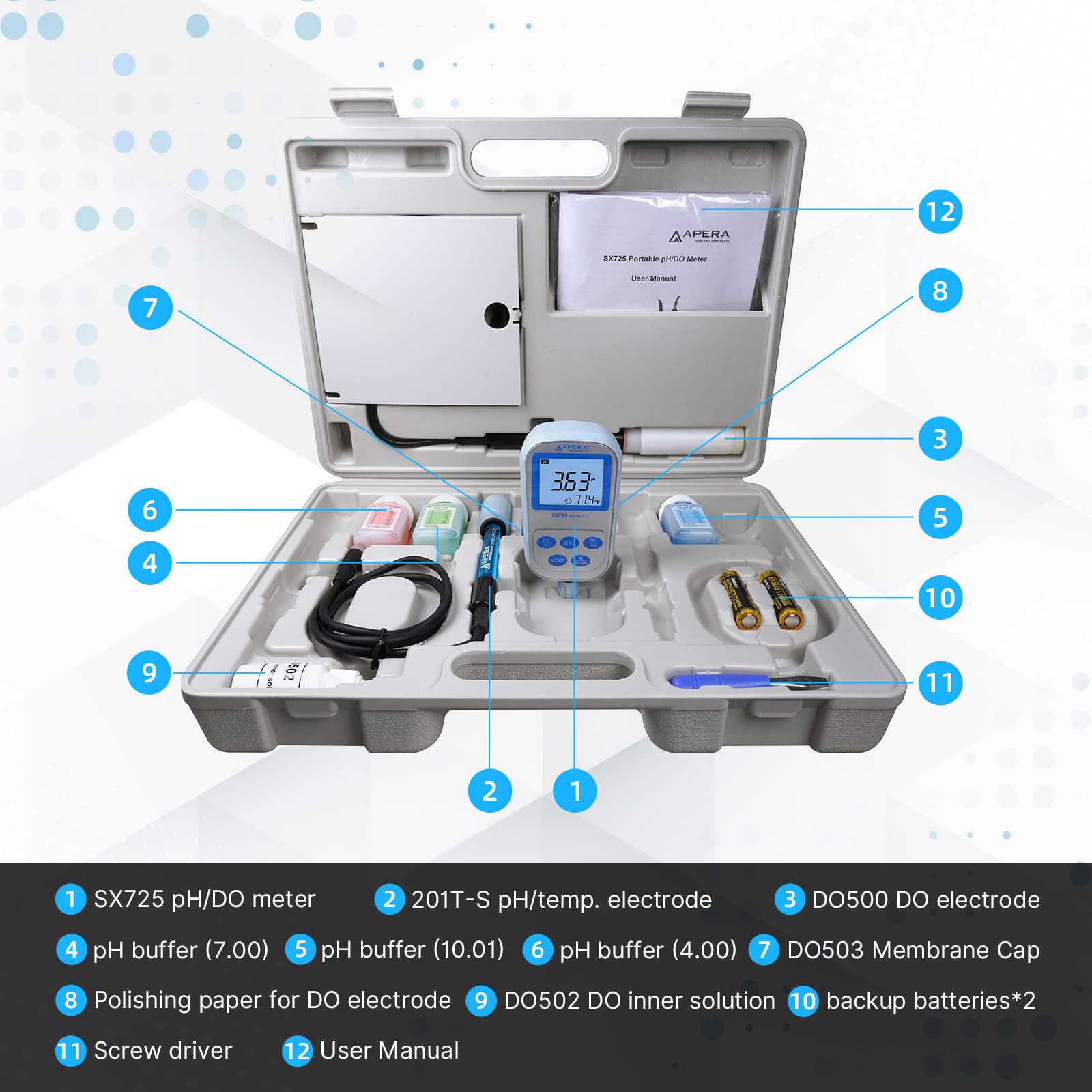 Apera Instruments SX725 pH/DO Multiparameter Portable Handheld Meter Kit