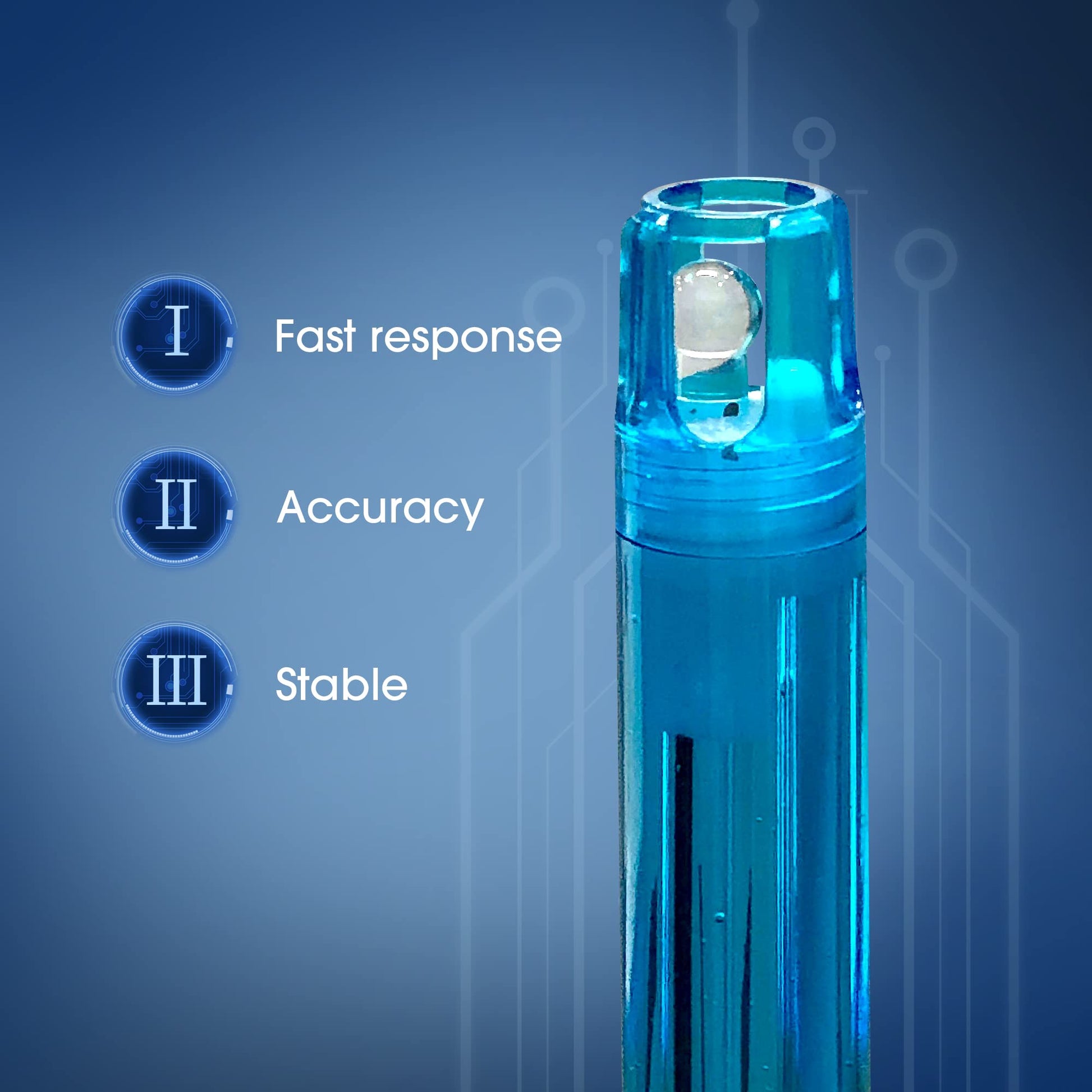 • Intelligent functions –– auto. calibration, auto. temperature compensation, self-diagnosis, data logging, auto. power off, and more.