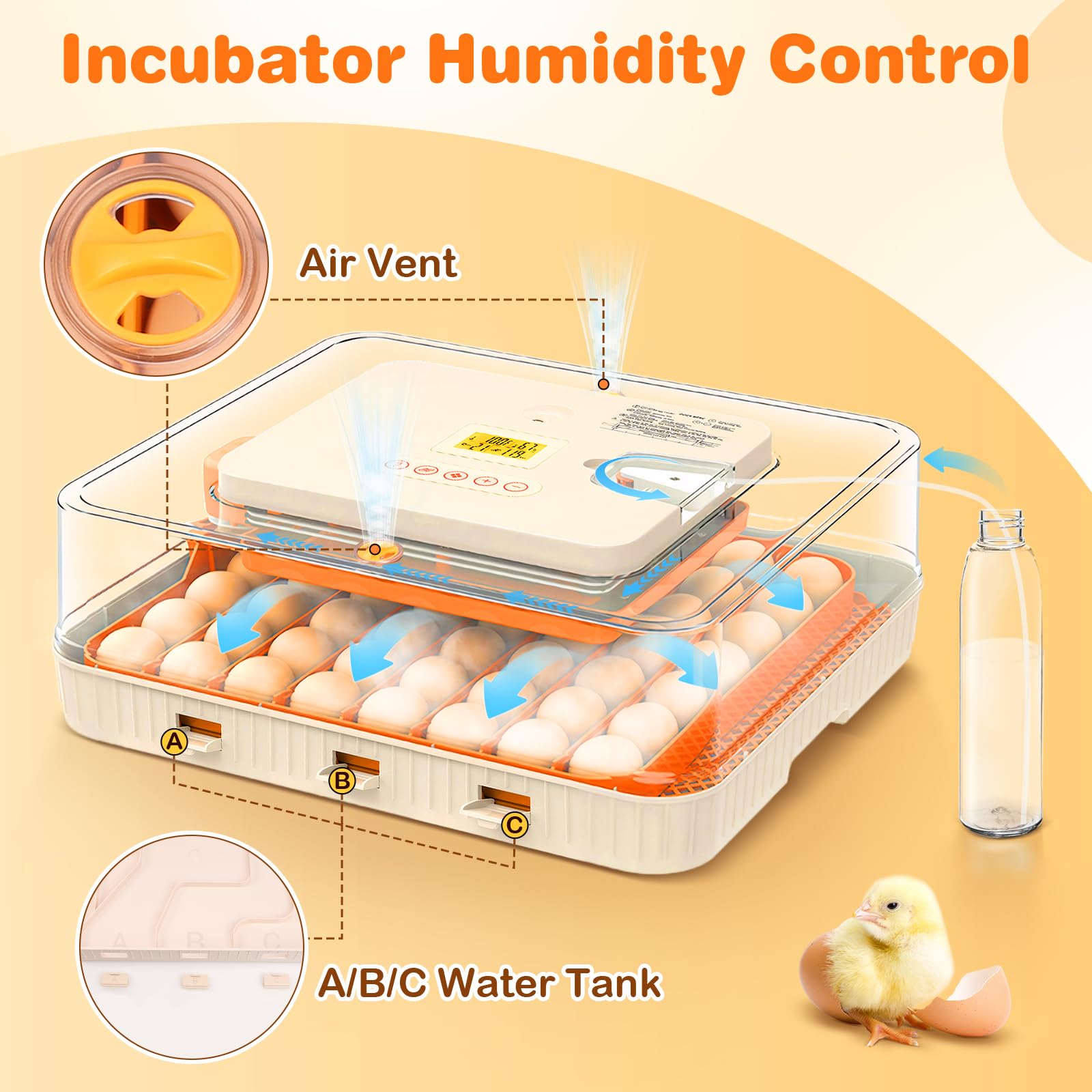 APODESS 56 Egg Incubator for Hatching Eggs, Egg Incubators with Automatic Egg Turning, Temperature and Humidity Control, Egg Candler, Automatic Water Bottle Refill, Incubator for Chicken, Ducks, Goose