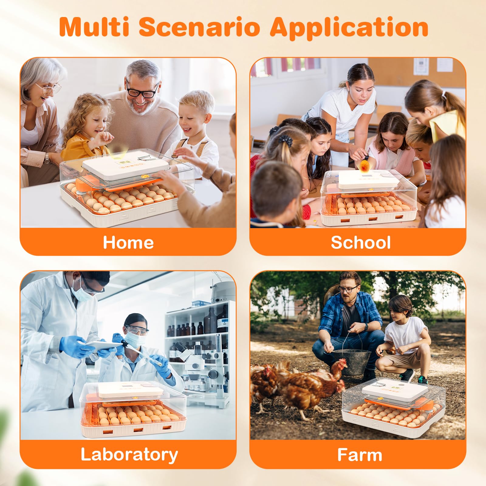 Multi-functional Incubator: The chicken incubators for hatching eggs is versatile and suitable for hatching eggs of various poultry species,such as chicken, duck, goose, pigeon, quail, etc.. APODESS incubator is perfect for home use, education and laboratory use