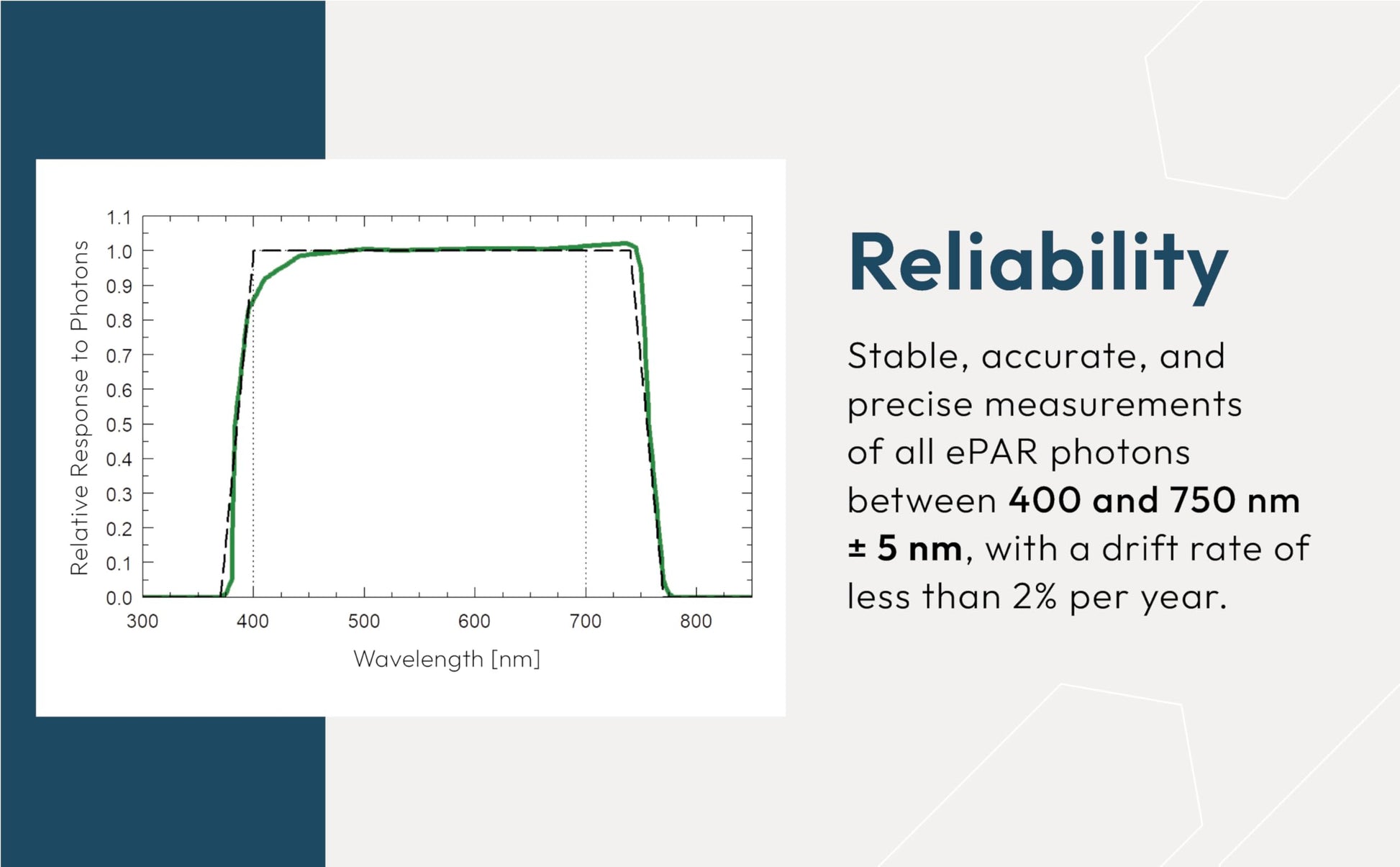 NEW ePAR RANGE: Lab-grade measurement reveals photosynthetic activity from 400-750 nm, expanding beyond the traditional 400-700 nm PAR range. Dr. Shuyang Zhen and Dr. Bruce Bugbee spearheaded the defining research. The MQ-610 accurately measures far-red photons (700-750 nm), vital for next-gen LED fixtures, sunlight, and other sources not captured by standard PAR meters.