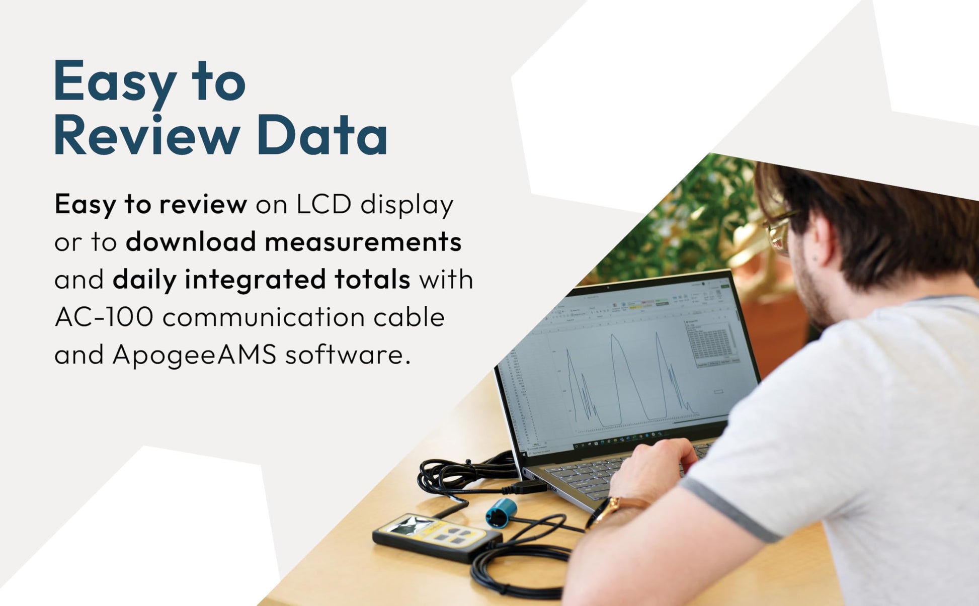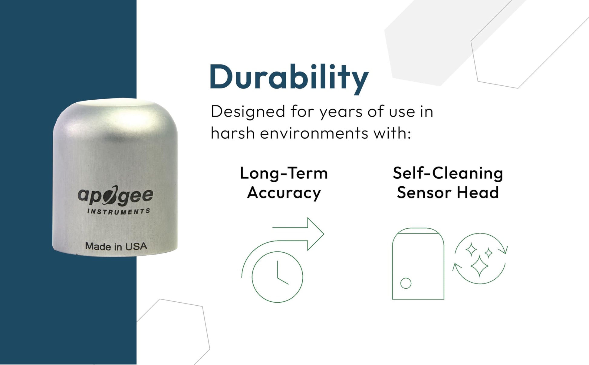 RUGGED DESIGN: The sensor head is made of machined aluminum and fully potted, making it waterproof and rugged. The tangle-free cable facilitates measurements over a large plant canopy, while still allowing the user to view the high-contract display screen.
