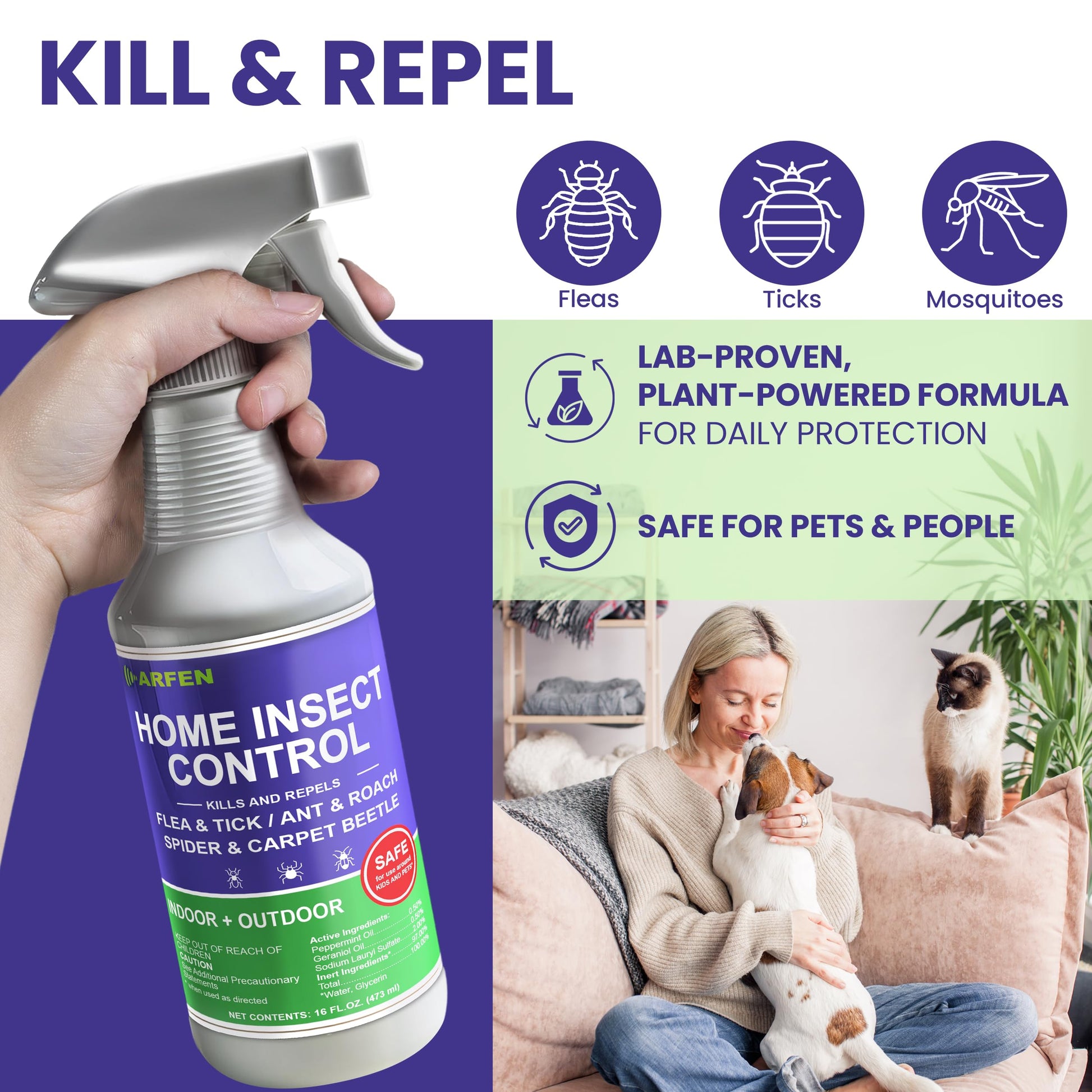 ARFEN Home Insect Pest Control Spray 16oz – Kills & Repels Fleas, Ticks, Ants, Roaches, Spiders, Bed Bug and More on Contact with Peppermint Oil; Natural Safe and Effective Indoor & Outdoor Solution