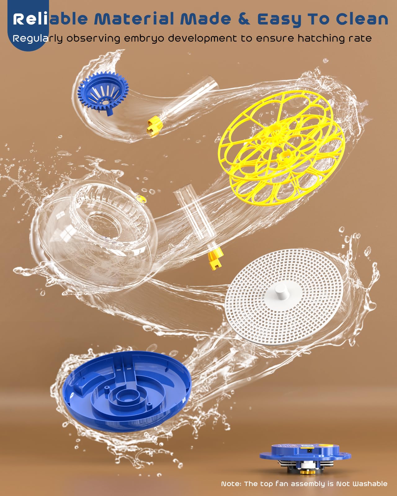 - γπΊππππ-πͺππππ 360Β° π·ππππππππ π½πππγ- Incubators for hatching duck egg uses ABS+PET material made, stable, durable & environmentally friendly. The super transparent shell features 360Β° viewability, allowing you to observe the development of the eggs in real-time from the entire incubation process, making it ideal for life education programs for children to feel the miracle of life.