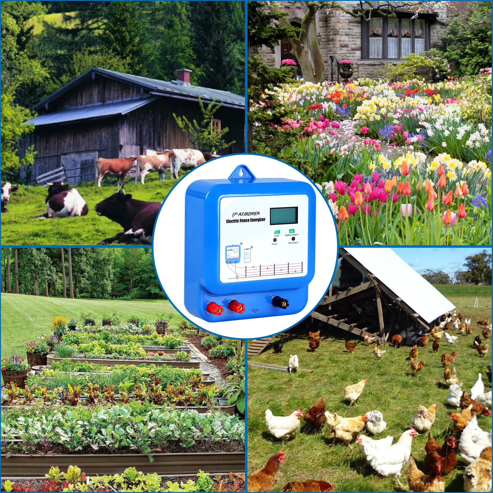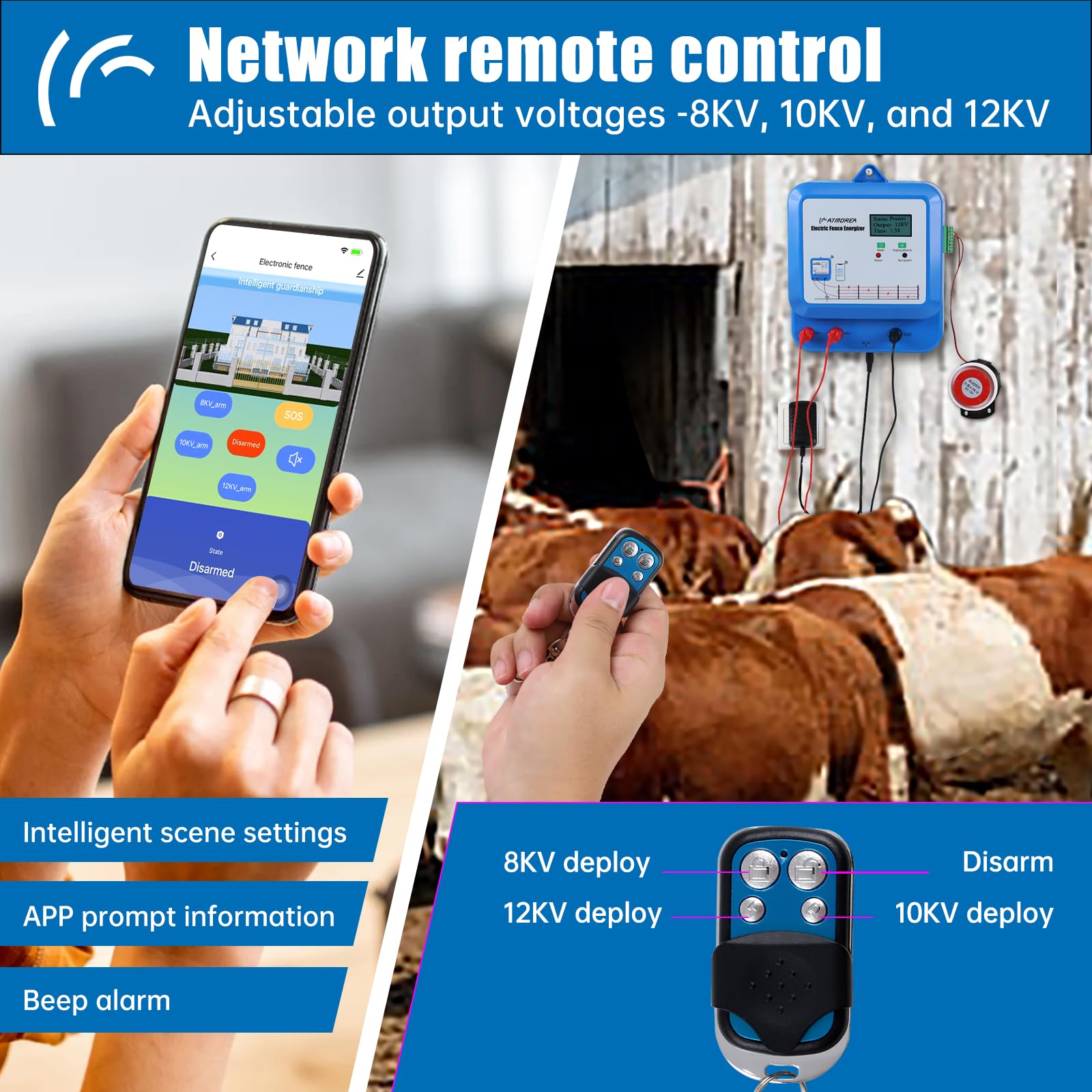 ATMOREA Smart Electric Fence Charger with Dual Alarm - 1.5/2 / 3 Joules Adjustable Energizer for Mobile Devices and Remote Control - Ideal for Poultry, Livestock, Gardens and Yards Safety