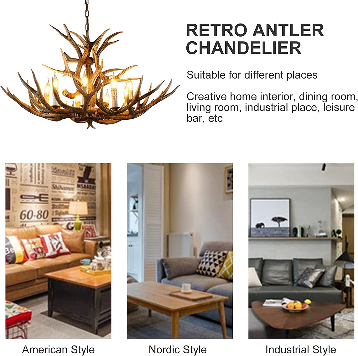 【Entertainment from nature】Antler chandeliers can not only illuminate, but also bring you the breath of nature, creating a wonderful atmosphere for your family. The right sized resin deer antler light is suitable for most places, the unique lighting effects will give you a different atmosphere. Soft lighting keeps your home warm at all times.