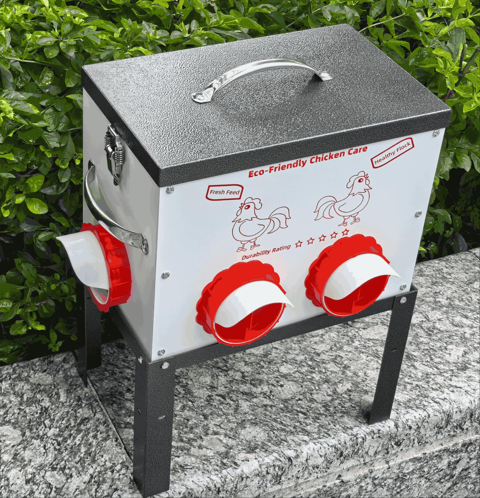 STURDY & DURABLE: The metal chicken feeder is more durable than plastic feeders. It can withstand harsh outdoor weather, resists damage from sun and weathering, and is animal-resistant. It will not rust, rot, or corrode, and is easy to clean.