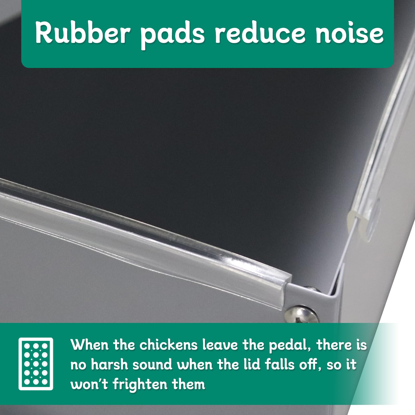 Treadle Feeder: Allowing chickens access their food when hungry, the automatic chicken feeder with anti slip design t from slipping down and helps stabilize standing (chicks must weight at least 500g to open the lid). The lid can be opened for a while to allow the chickens to get used to the feeder, then you can put the lid down and let the chickens try to stand on the treadle and open the lid by themselves. Our Double Slot Automatic Feeder allow a number of chickens to eat at the same time!