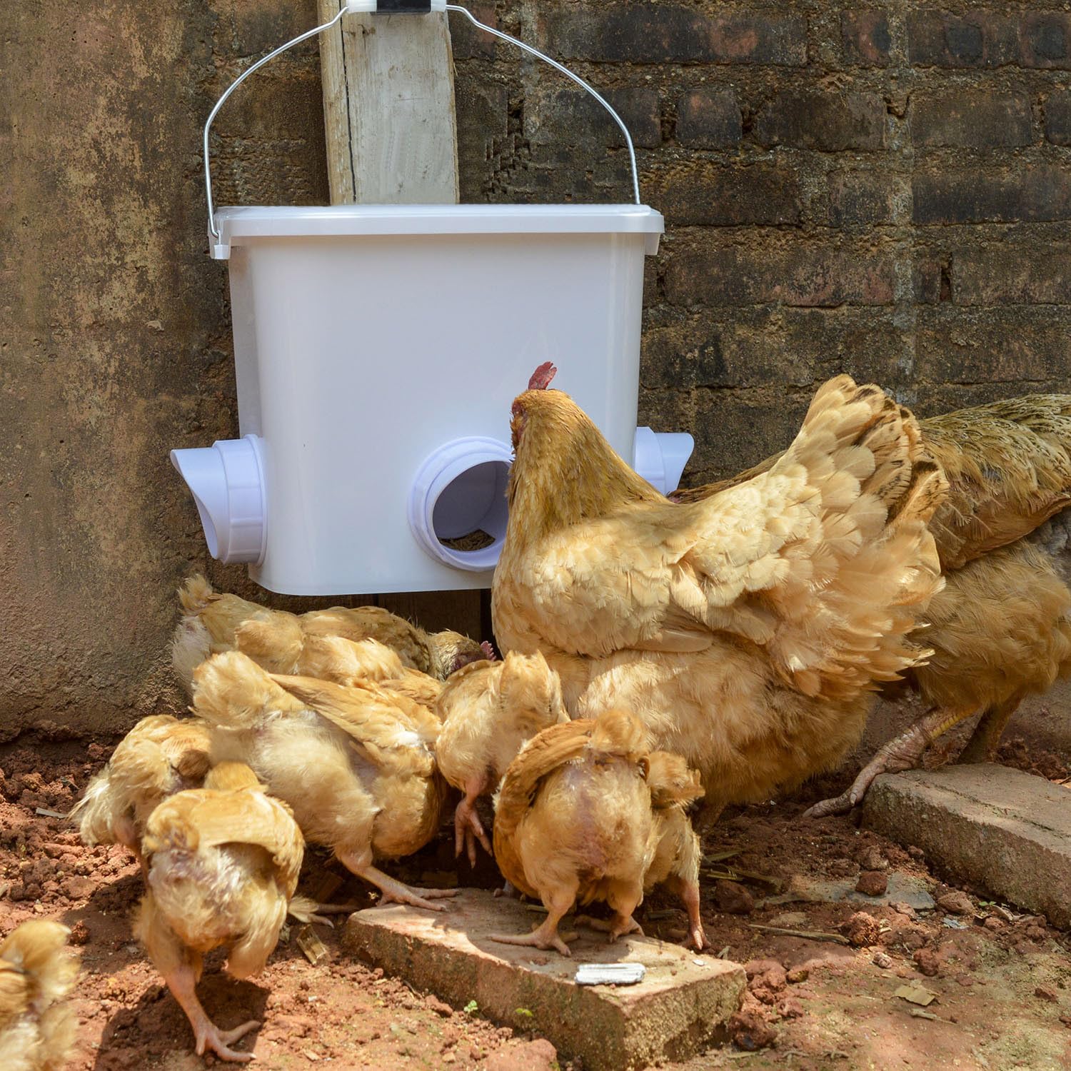 The chicken feeder kit works with most type of feed, suitable for most poultry such as hens, ducks