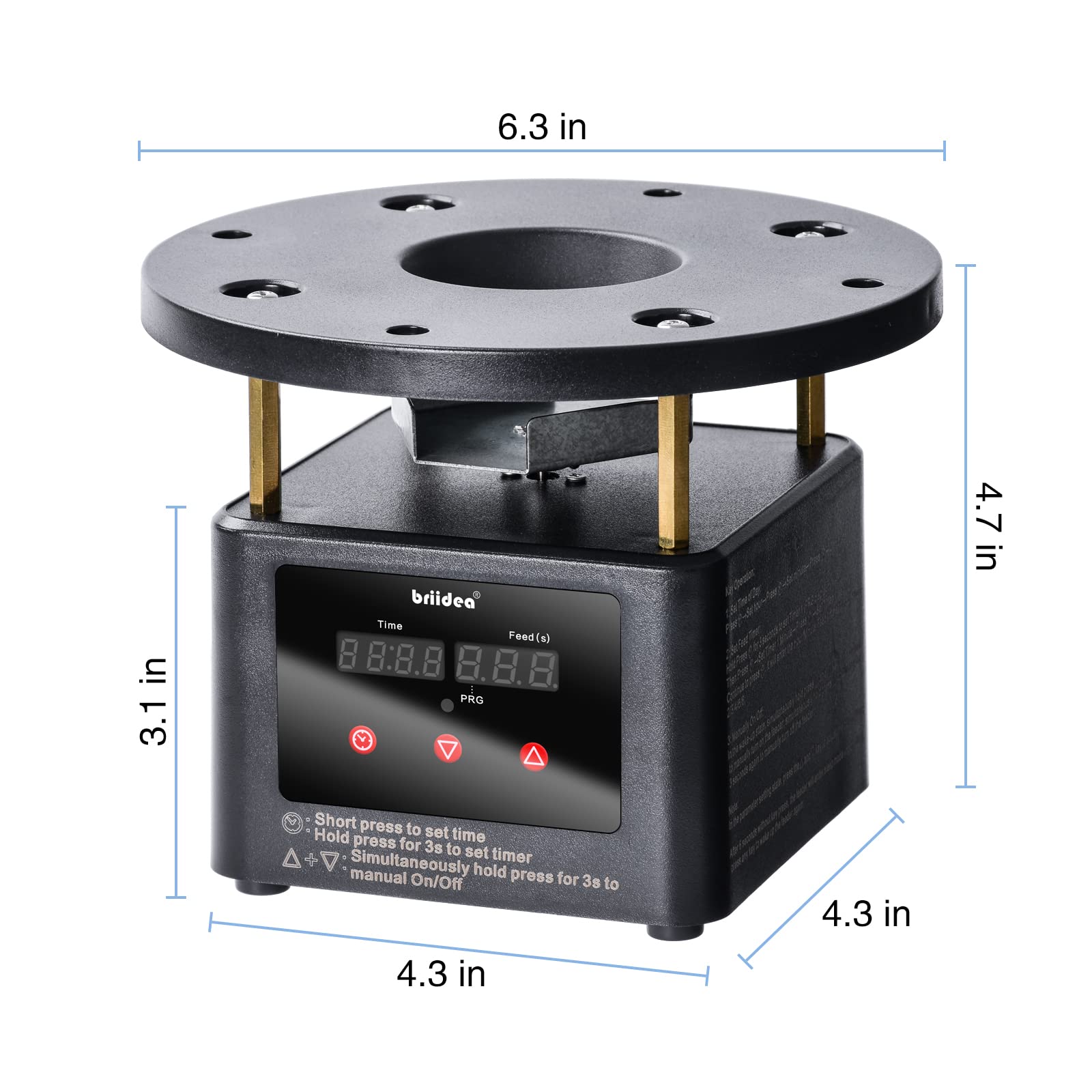 PROGRAMMABLE DIGITAL TIMER: Our programmable digital timer lets you schedule up to 6 feedings per day, with each feeding adjustable from 1 to 60 seconds. Take control of your feedings by deciding how much and when to dispense feed, saving you both time and energy. The throw range extends approximately 5 to 6.5 feet (about 1.5 to 2 meters)