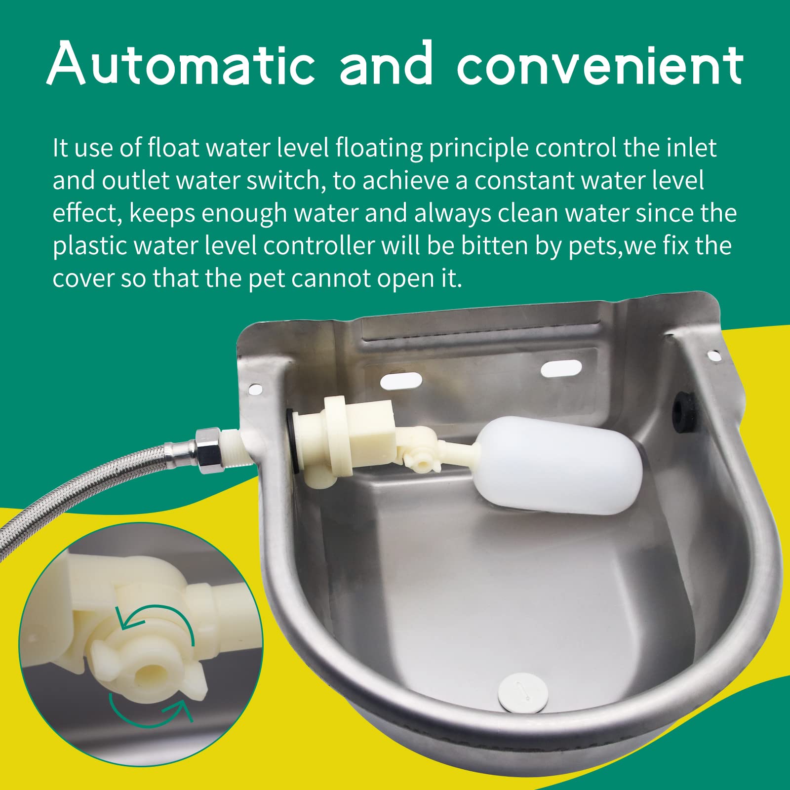 -Save Water:Compared with the traditional sink, the automatic livestock water dispenser can save 30% of the water , reduce the sewage and keep the water clean. It is suitable for farms, courtyards,ranches and other places. 2.5L large capacity can meet the needs of pets for drinking water, suitable for small and medium-sized farm animals such as horses, calves, chickens, ducks, sheep, dogs, cats, etc