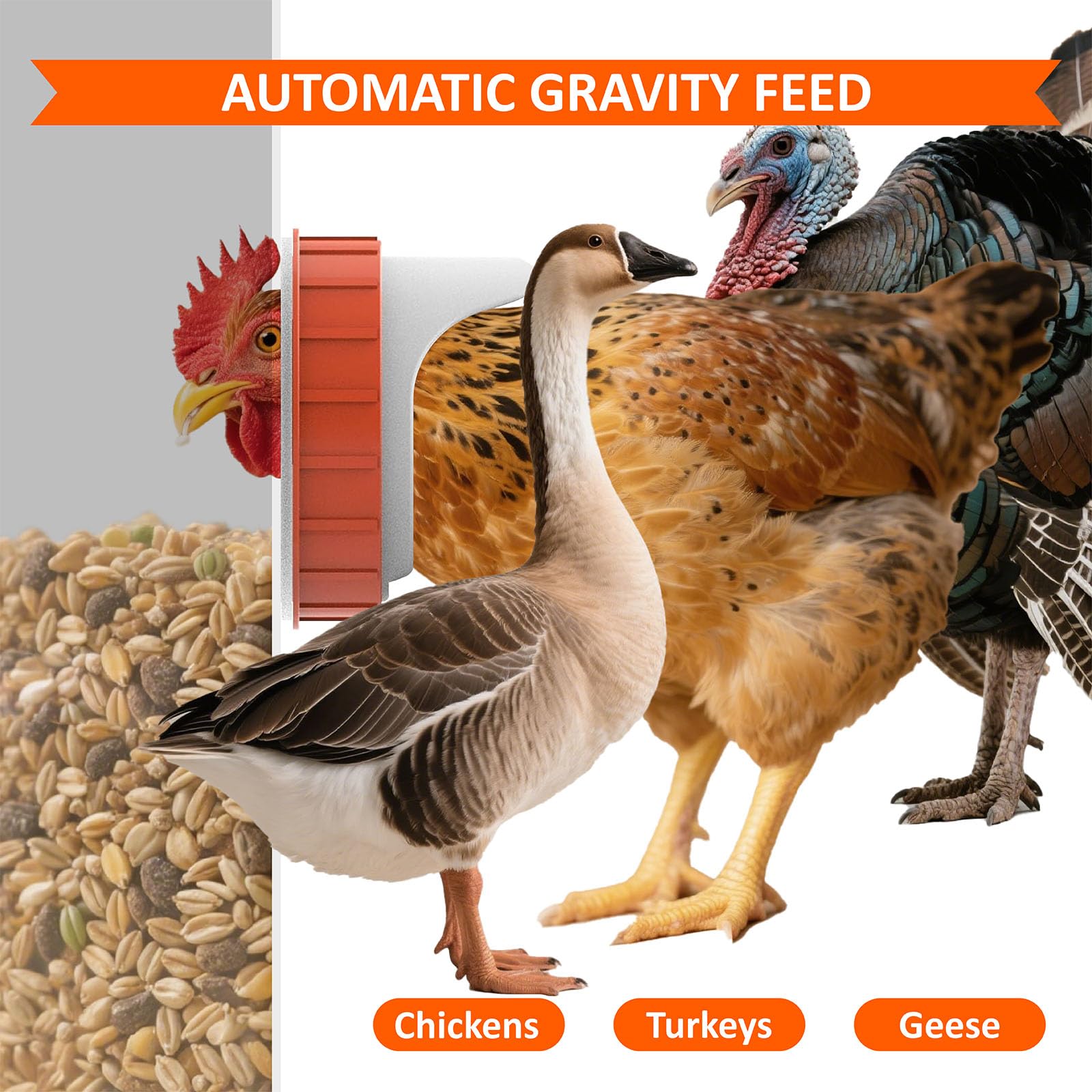 【Lock Down Savings & Stop Waste】 Our automatic chicken feeder's animal-proof lock and precision feeding ports virtually eliminate costly spillage and prevent animals like raccoons from stealing your valuable feed, maximizing your investment.