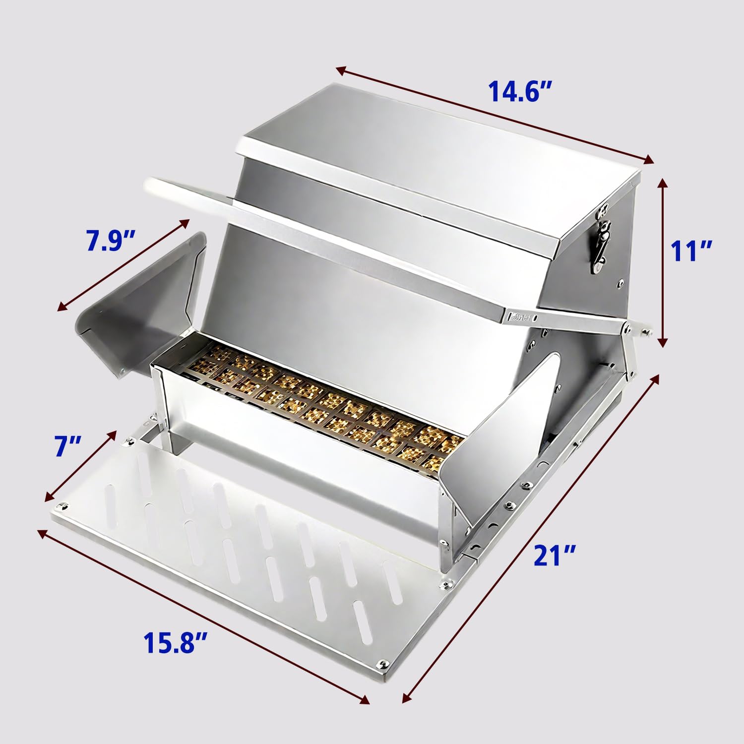 Durable Construction: Crafted from sturdy galvanized steel, this metal chicken feeder is built to withstand various weather conditions. Its robust design guarantees longevity and resistance against rust, making it ideal for both indoor and outdoor use.