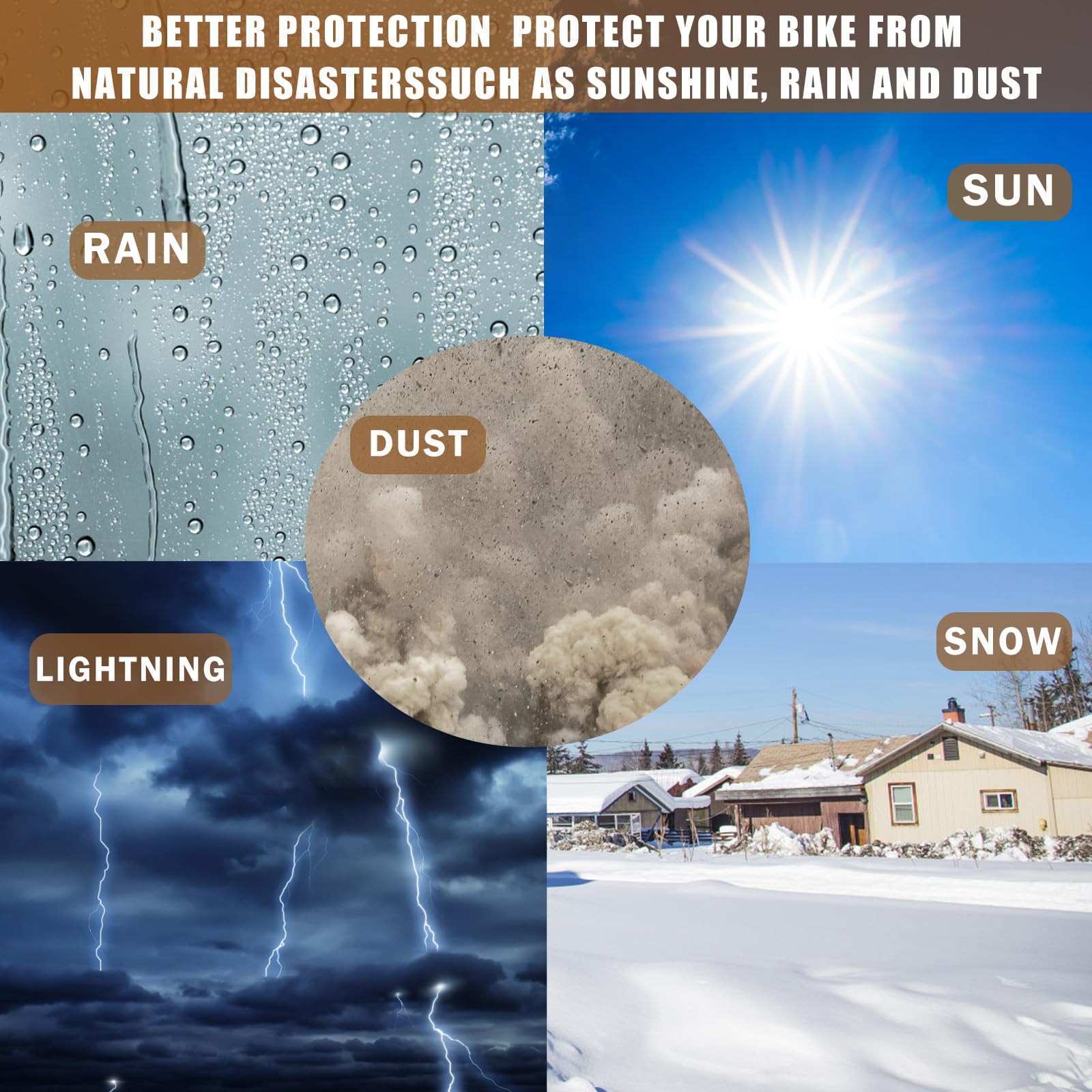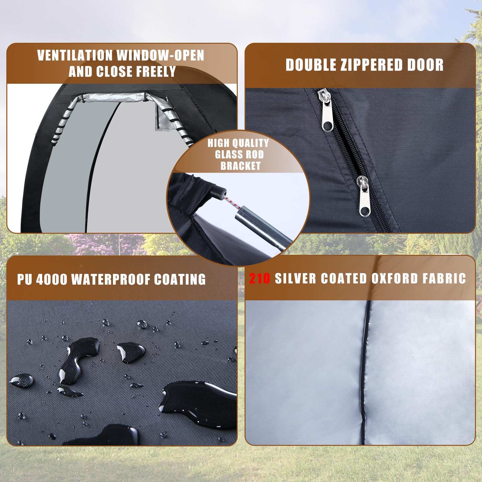 【Sturdy material】The bicycle shed is made of high-quality 210D silver-plated Oxford cloth, three layers of anti-tear material, waterproof and anti-ultraviolet treatment(PU4000), no need to worry about fading. All seams are rolled and double stitched with durable thread, which can be firmly supported in any bad weather.