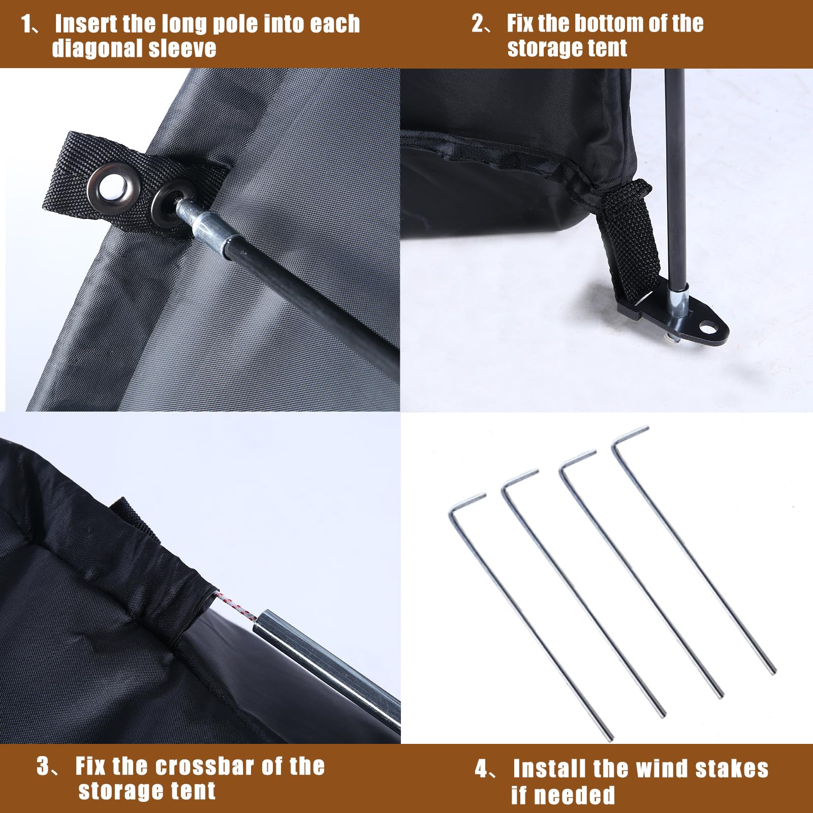【Space-saving storage】 78 x 64 x 32 inches,can accommodate two adult bicycles, As an outdoor storage tent, it can store long-handled garden tools, furniture mats, bicycles, lawn mowers, coolers, swimming pool toys and other items.You can also use it as a campsite or any other purpose you want.