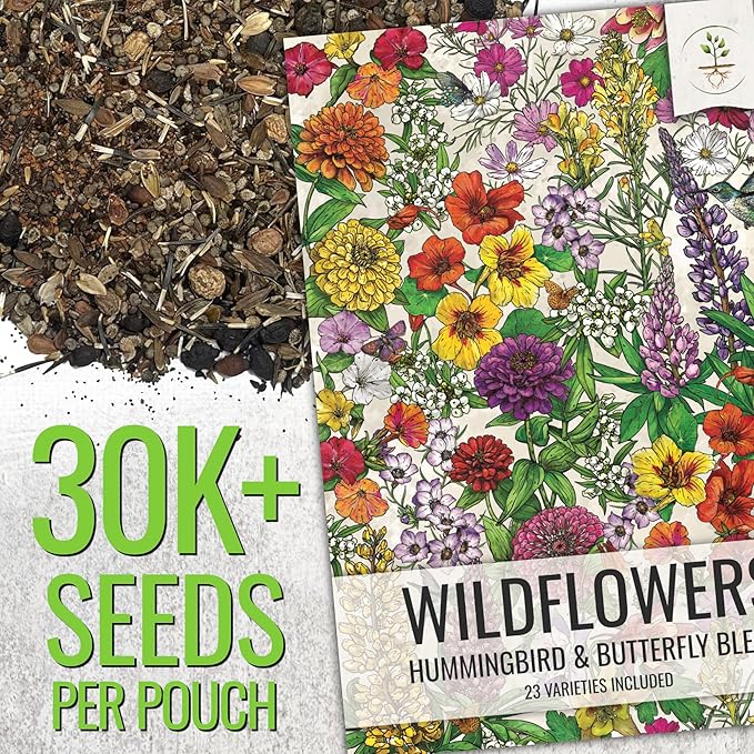 Seed Needs Wildflower Seeds Butterfly and Hummingbird Seed Mix 2 Ounce No Filler | 23 Varieties Annual & Perennial Species Such as Butterfly Milkweed, Cosmos & Zinnia | Resealable Bulk Package