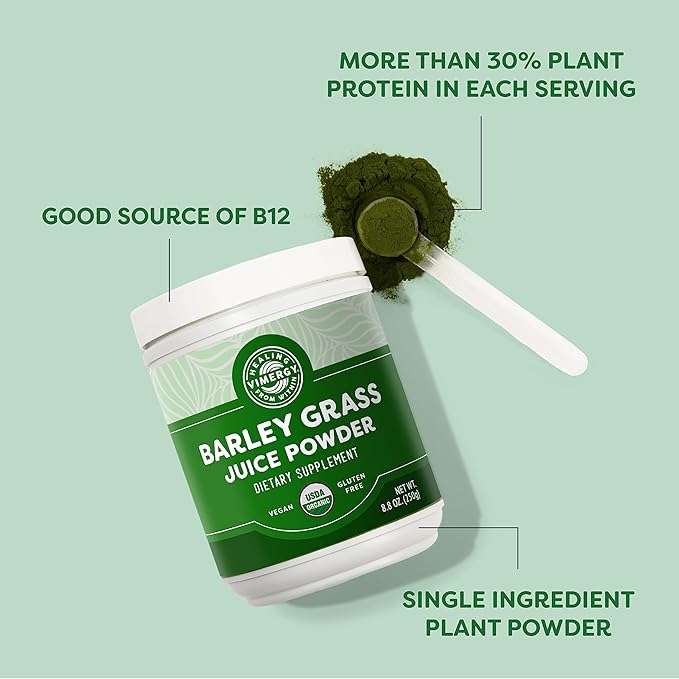 • PEACE OF MIND CLEAN. Vimergy barley grass super greens powder is formulated without anti-caking agents, fillers, binders, sugar, colors, or flavors. Our barley grass powder supplement is USDA Certified organic, non-GMO, vegan, kosher, and is also paleo friendly. For a daily health boost, just add a scoop of our natural green powder to a glass of water or juice, a smoothie, or even oatmeal and plant-based yogurt.