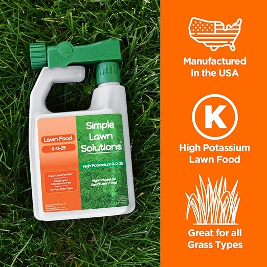 Simple Lawn Solutions - High Potassium Lawn Food Liquid Fertilizer 0-0-25 - Concentrated Spray - Turf Grass Vigor and Plant Hardiness - Summer and Fall - Any Grass Type (32 Ounce)