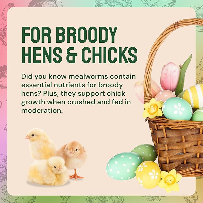 • Perfect For Every Life Stage: These dried meal worms for birds are suitable for all life stages and various breeds like Rhode Island Red, these mealworms are a must-have for your chicken feed routine. They can be hand-fed or used as a supplement to regular chicken food