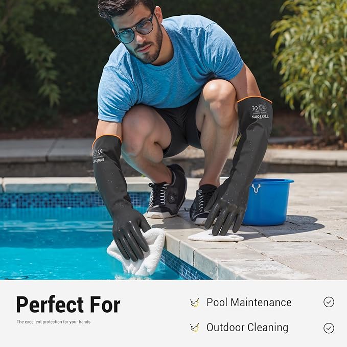 • 【Versatile Length Options】With three length choices, the long rubber gloves provide comprehensive coverage to protect your forearm and arm during activities such as machine repair, yard work, aquarium maintenance, chemical processing, and laboratory tasks.