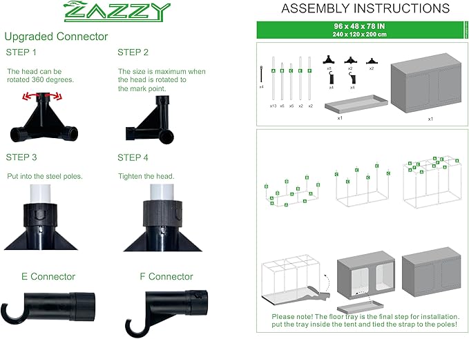 • 【Easy to Assemble】Growing tents are simple and fast to install without any tools even if you've never done something like this before. The package includes the user-friendly and professional instruction well.
