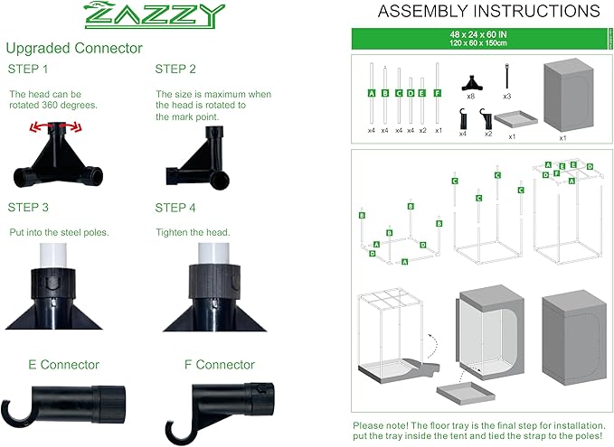 • 【Easy to Assemble】Growing tents are simple and fast to install without any tools even if you've never done something like this before. The package includes the user-friendly and professional instruction well.