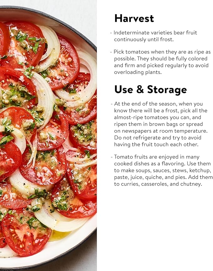• EASY GROW SEEDS: Healthy, indeterminate tomato vines produce all summer long, beginning about 70 days after transplanting into the outdoor garden. Bred to thrive, these seeds produce healthy 45" tall plants with a 38" spread and a 22-32oz fruit harvest.