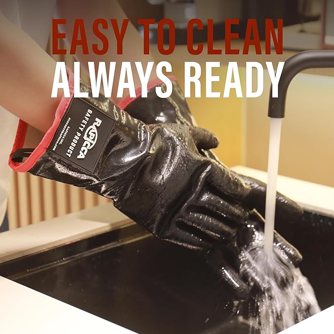 • Smooth Hot Liquid & STEAM Management: Experience effortless food extraction from hot boiling water or steam with these gloves, ensuring secure and easy handling. The waterproof neoprene coating offers a reliable grip, enhancing convenience in various cooking tasks, like dipping a chicken in hot water (Please conduct a cold water test to check for potential defective gloves).