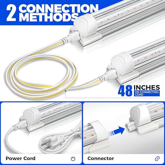 • Easy Installation: These LED grow light strips are just plug in and light up. With included tapes, clips and cable ties, you could set up in different ways to meet your application. And you can link up to 10 grow lights in one series by 48 inches connecting cords or short connectors