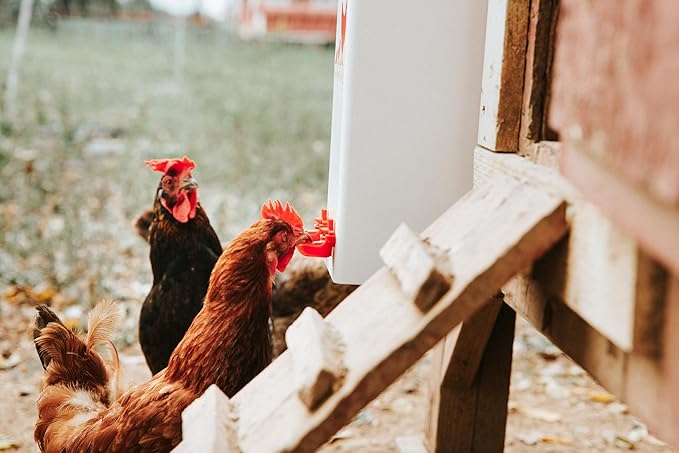 • Compact and Efficient: Perfect size for smaller spaces, large capacity! The Waterer holds 2 gallons with 2 Auto-Fill Cups and 2 Horizontal Nipples. A great solution for clean water for chickens, ducks, geese, turkey, quail and more!