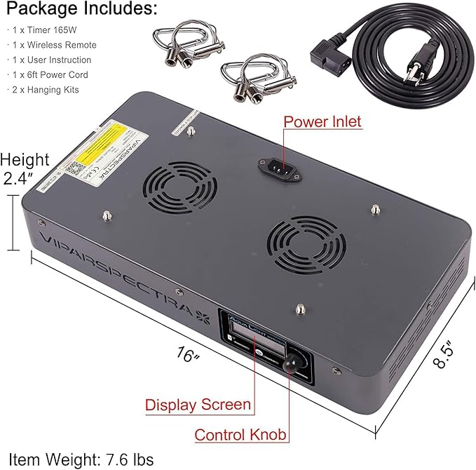 • VIPARSPECTRA timer control series V165 LED aquarium light is scientifically engineered to keep the balance of the PAR output and perfect for 24"x24" coverage