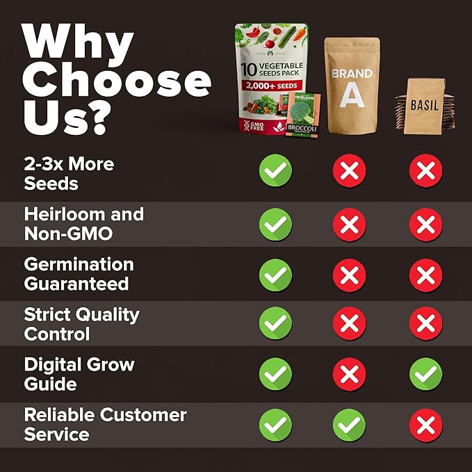 • High Germination Rate: Seeds consistently tested at over ninety five percent germination rate; Comes with comprehensive growing guide; Ideal vegetable seeds for planting outdoors or indoor garden seeds for beginners and experienced gardeners alike