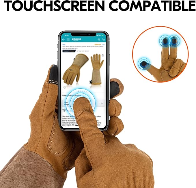 Vgo... Safety Work Gloves Men, Extended Pig Split Leather Cuff,Synthetic Leather, Rose Pruning Thorn Proof,Gardening(1 Pair,Size M, Brown,SL6592M)